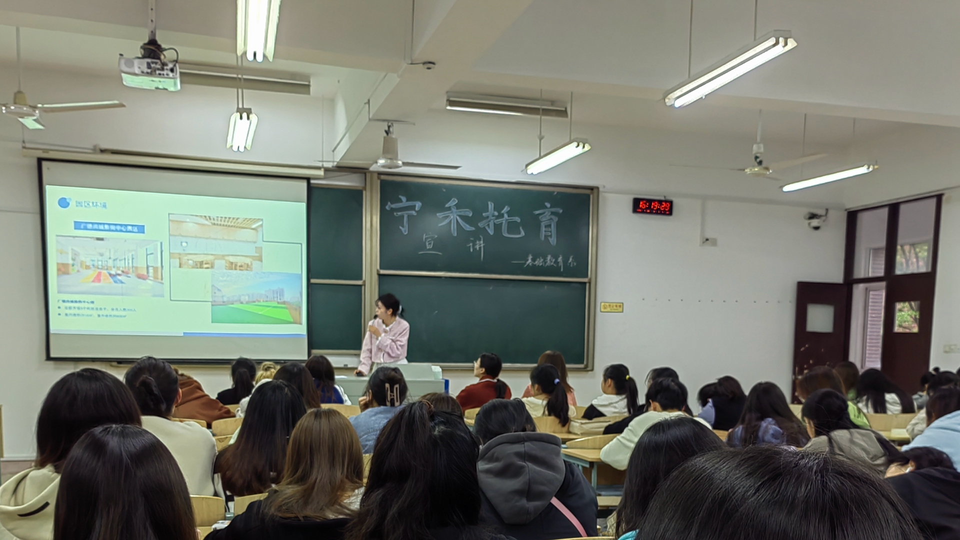 为做好2021级学生岗位实习工作,进一步加强校企合作,为学生求职和用人单位招聘搭建平台,促进学生与企业之间的双向选择。基础教育系于2023年4月23日下午在9207教室,举办校园企业宣讲会。本次宣讲会邀请校企合作单位宁禾托育机构负责人来校为即将走入实习岗位的学生提供近距离了解企业的机会。