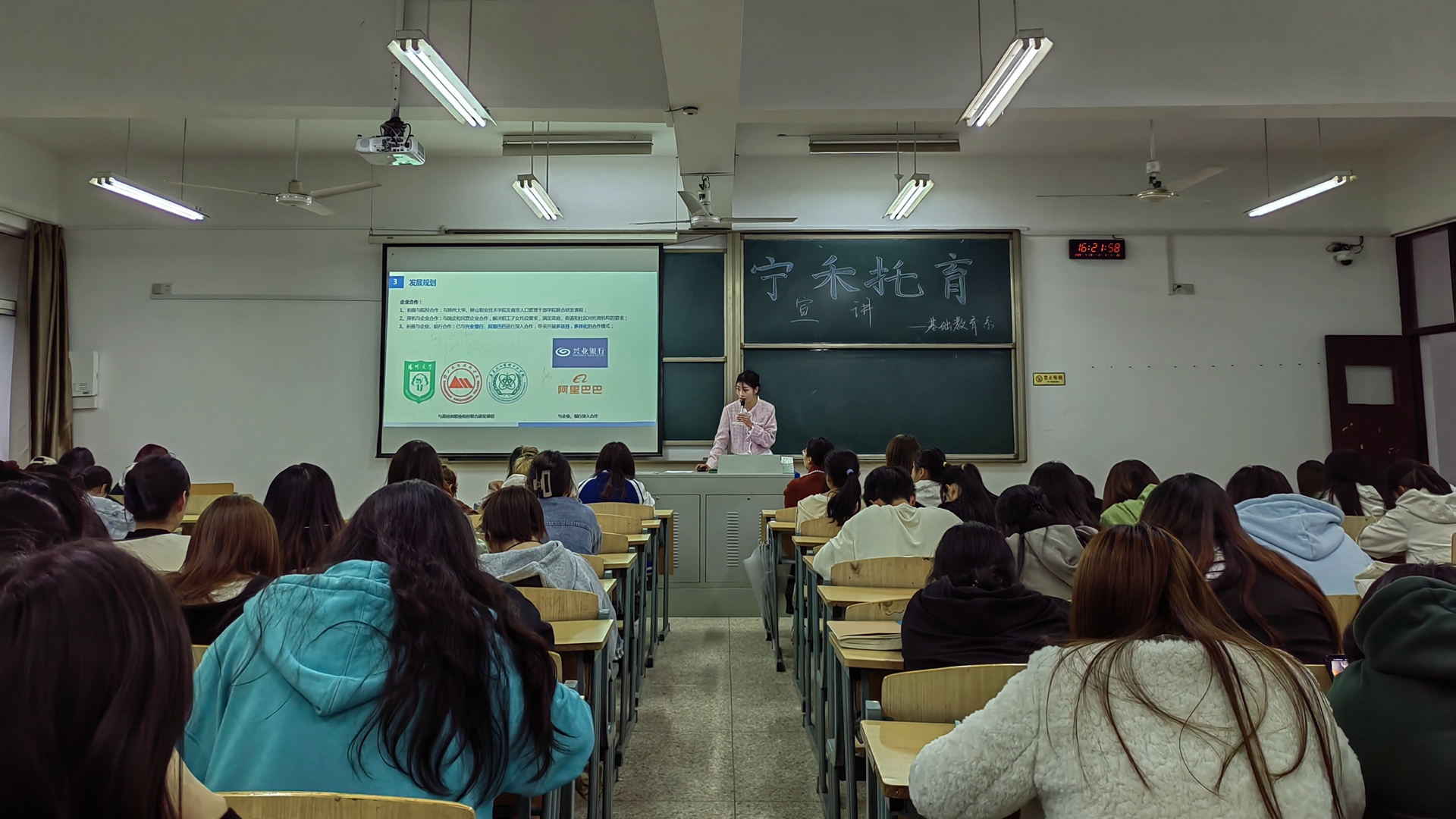 宁禾托育精心准备宣讲材料,向学生展示了行业现状、十三水游戏、发展规划、福利待遇以及校企合作培养模式等相关信息。通过企业的宣讲,学生对企业有了更直观的了解,对岗位实习方向有了更明确的选择和计划。