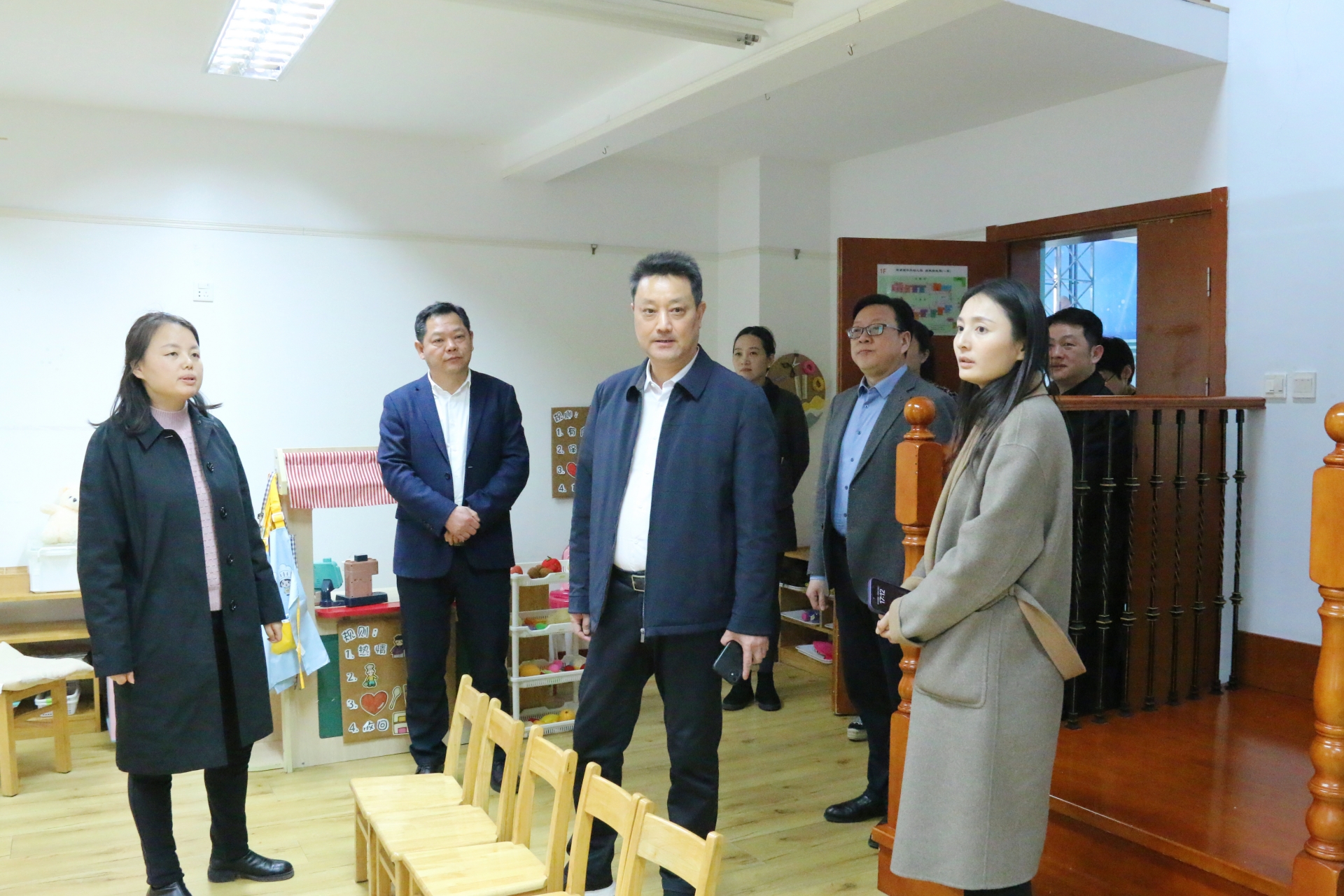 在孙永荣等领导陪同下,王春一行还参观了大国工匠工作室、正德立宝托育园和幼儿园实践基地。