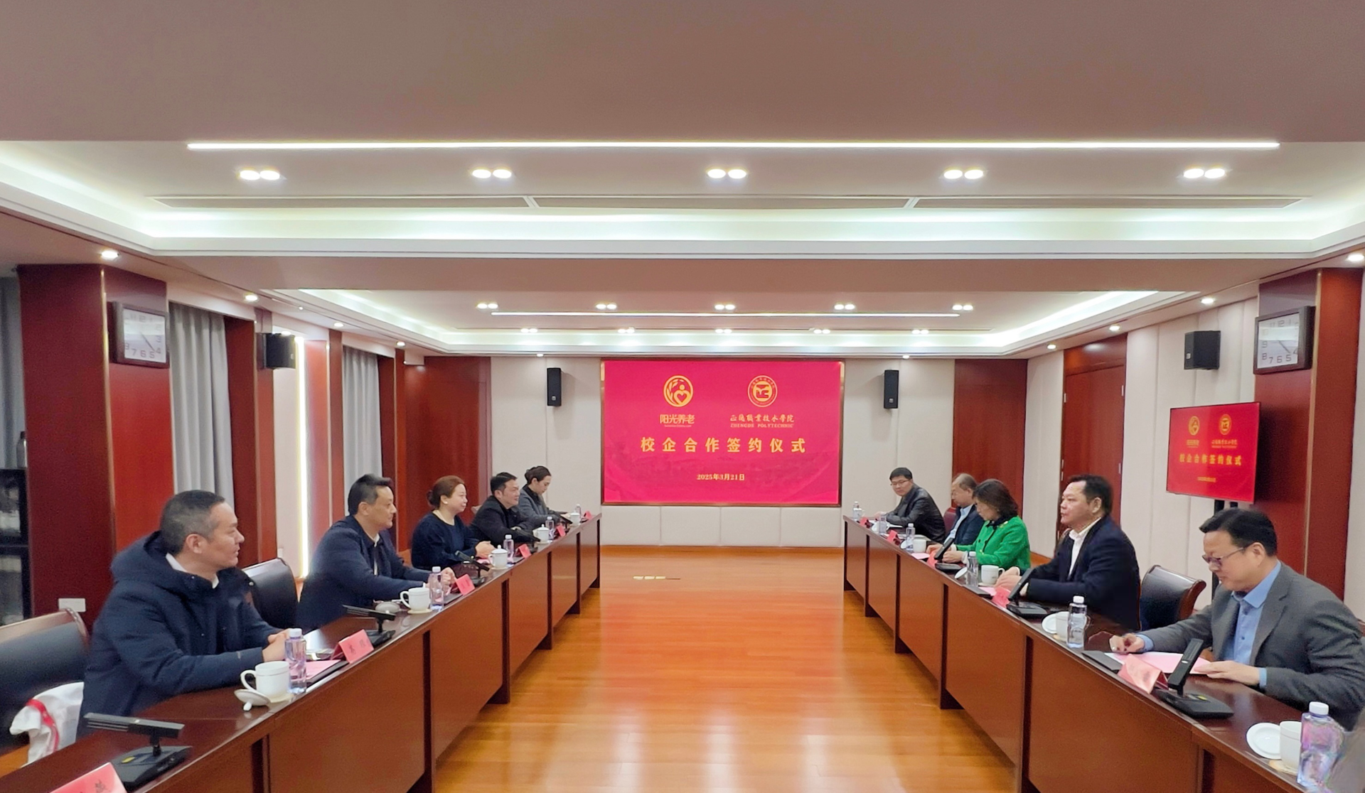 签约仪式上,孙永荣向王春一行的到来表示热烈欢迎。他表示,随着银发浪潮汹涌而至,面向智慧养老新领域的专业化复合型高技能人才需求日益旺盛,阳光养老作为长三角养老服务标准化建设先锋的标杆企业,希望双方通过资源互补与模式创新,合力破解适老化社会人才供给难题,通过培养模式改革、重构课程体系、联合技术开发等,共同培养具备“人文情怀+实践技能”的高技能人才。