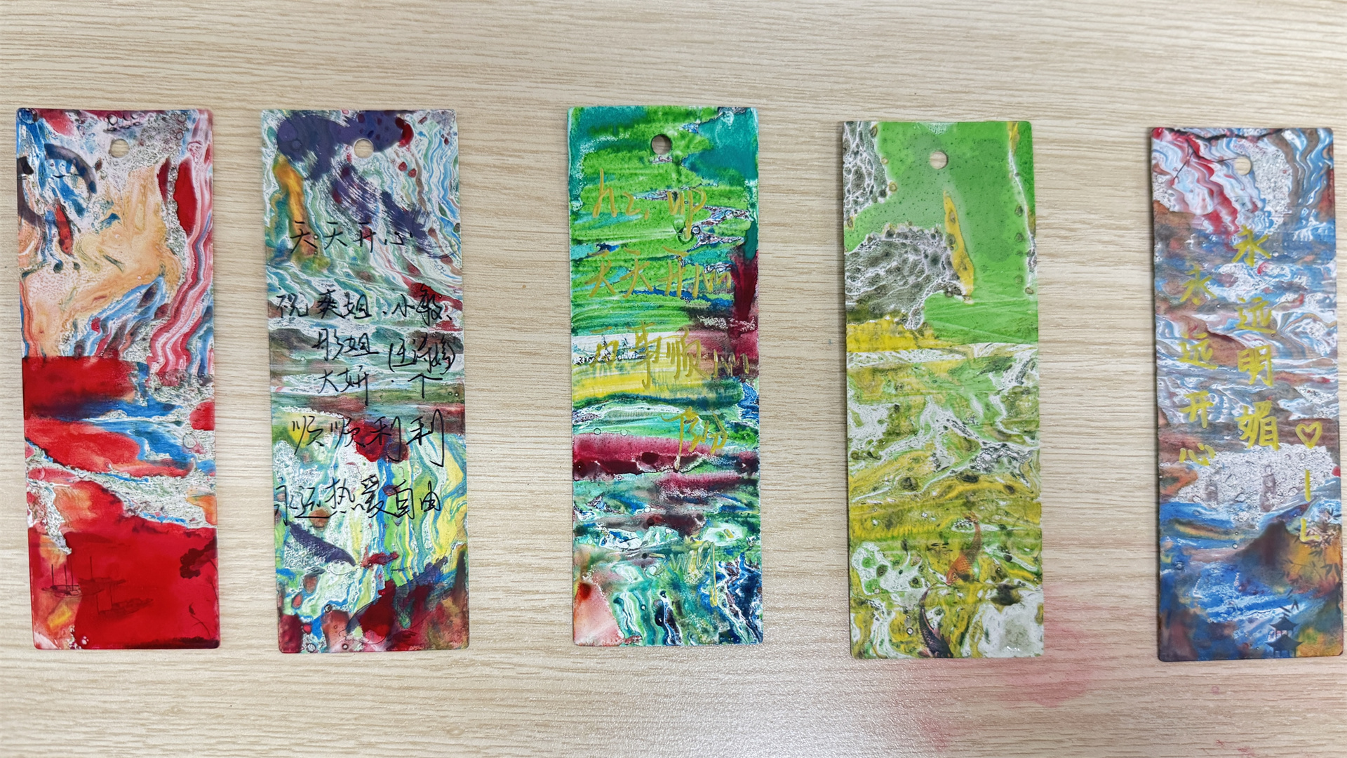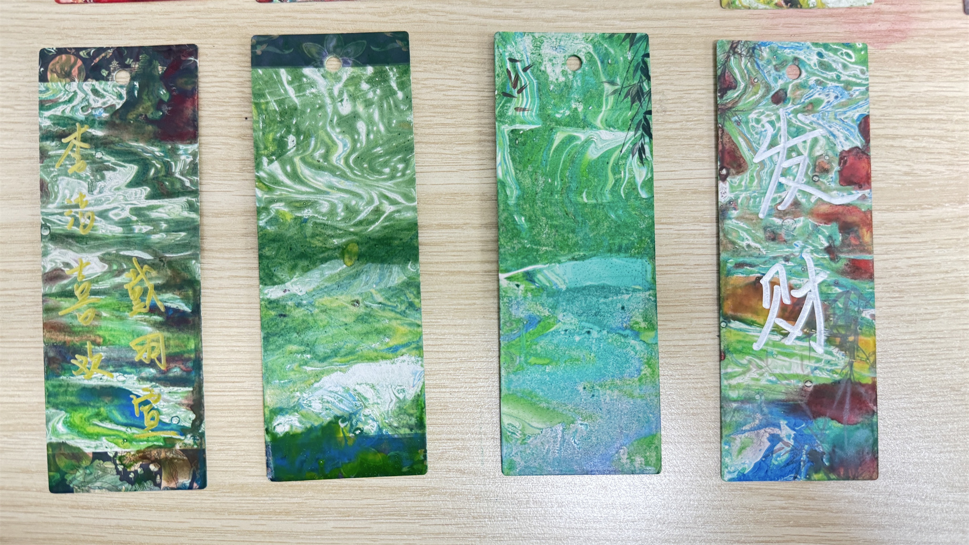 同学们根据网络上了解到,漆扇是国家级非物质文化遗产的历史渊源与工艺流程,并亲手体验了漆扇书签的制作过程。漆扇以天然大漆为主要原料,经过多道传统工序精制而成,兼具实用性与艺术美感。本次活动在传承传统技艺的基础上,巧妙地将漆扇工艺与书签创作相结合,鼓励同学们在书签上题写诗词、名言或祝福语,使作品更具个性化与文化内涵。