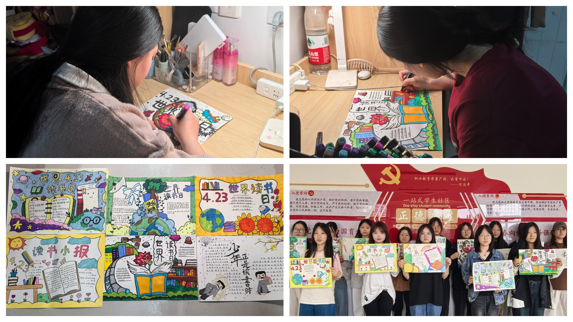 4月22日,基础教育系组织同学们在“南三一站式社区”开展了“世界读书日”主题手抄报创作活动。同学们围绕“世界读书日”主题,精心构思、巧妙设计,用绚丽的色彩、优美的文字和富有创意的图案,表达自己对书籍的热爱与对阅读的感悟。同学们绘制了精美的书籍图案,配以经典的读书名言;介绍了“世界读书日”的由来与意义,传递了阅读的价值和精神。一幅幅色彩鲜艳、内容丰富的手抄报,不仅展现了同学们不俗的绘画技巧和文学素养,更体现了他们对知识的渴望与对阅读的热爱。