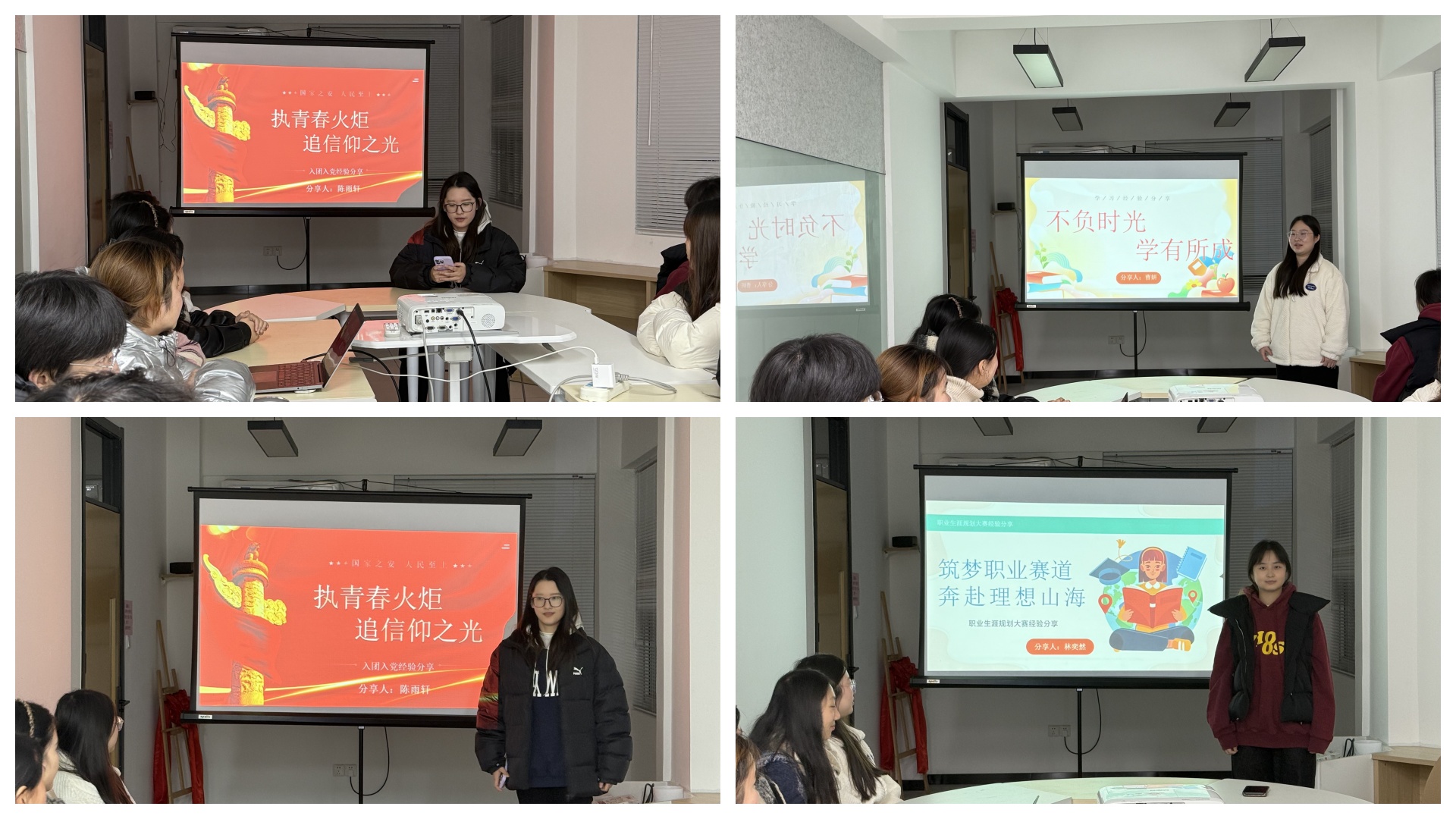 随后的互动问答环节气氛热烈,同学们围绕学习方法、入党申请书撰写、证书考取等具体问题踊跃提问,三位学姐结合自身经历,耐心细致地逐一解答,其真诚而实用的分享获得了在场同学的阵阵掌声。