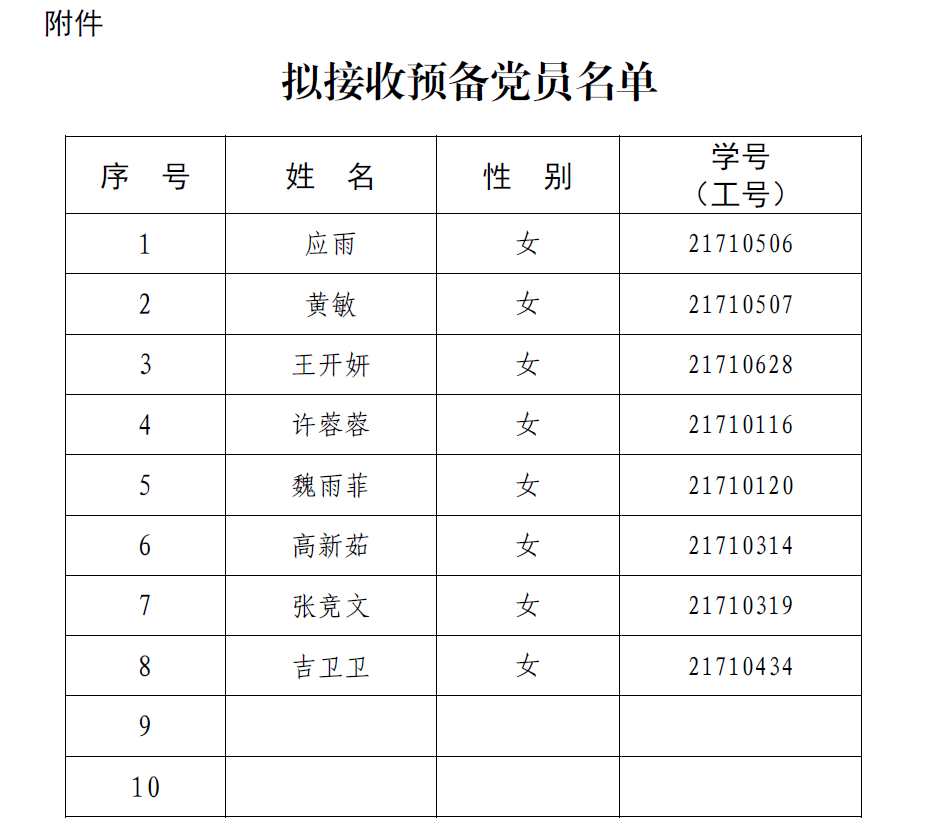 经党组织培养考察,基础教育系党支部2023年下半年拟接收8名同志(名单附后)为中共预备党员。根据《中共十三水游戏 委员会发展党员工作实施细则》文件精神,党员和群众对发展以上同志为中共预备党员如有异议,可以采用口头或书面形式于11月27日前,向基础教育系党支部反映。