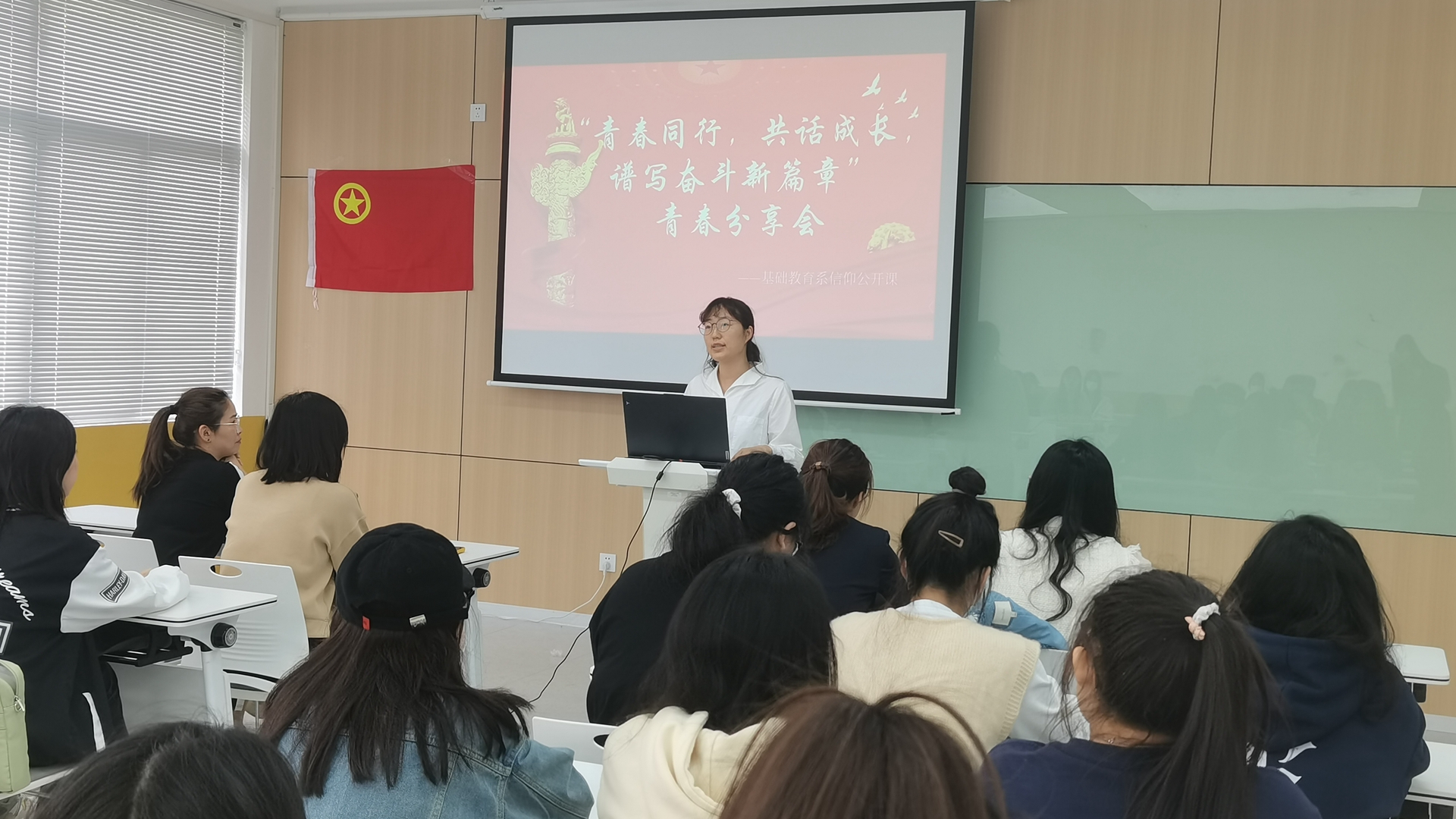 为进一步组织引导广大青年学生深入学习宣传贯彻习近平新时代中国特色社会主义思想和团十八大会议精神,加强共青团思想政治引领工作,根据《关于实施高校共青团“信仰公开课”计划的通知》文件精神和院团委工作安排,基础教育系团总支于4月27日下午在9205教室开展了一场别开生面的信仰公开课。基础教育系党支部书记杨春娟、辅导员朱雯和我系优秀青年学子参加。团总支书记魏玮主持本场信仰公开课。