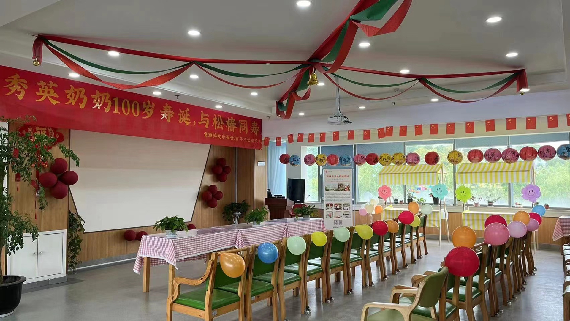 首先,作为这几年来银城松椿颐养园的第一位百岁老人,铁心桥街道居委会来到颐养园为汪奶奶送去了生日蛋糕、鲜花,还送去了最真挚的生日祝福,为了给汪奶奶一个具有“仪式感”的生日宴。