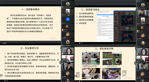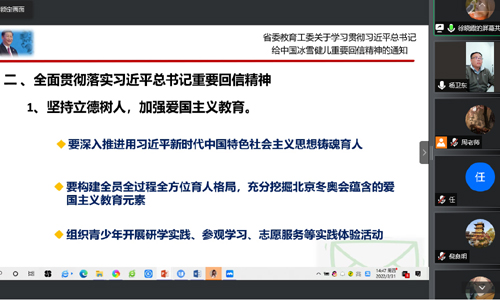 在学习中,三个党小组分别在组长李颖、金晶和沈帅的主持下,重点学习了习近平总书记在省部级主要领导干部学习贯彻党的十九届六中全会精神专题研讨班开班仪式上的重要讲话精神;学习了习近平总书记在2022年全国“两会”期间的重要讲话精神及李克强总理所作的《政府工作报告》;学习了习近平总书记给中国冰雪健儿重要回信的丰富内涵和重大意义;学习了习近平总书记在中共中央政治局常务委员会会议(2022年3月17日)上关于新冠肺炎疫情防控工作的重要讲话精神,并结合自身教学工作实际,通过PPT汇报和专题发言,交流了各自的心得体会。