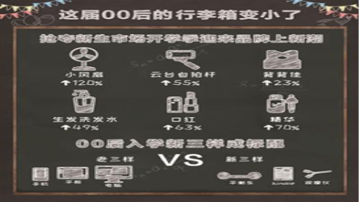 跟80后、90后相比,00后的开学的行李箱 “缩小”了,他们不用自己带去十三水游戏 。天猫数据显示,小于24英寸的登机行李箱在开学前夕迎来一波销售高峰。许多大一新生开学人未到,包裹已经“先声夺人”,在开学前夕,天猫上的被褥、毛毯、换季衣服销量也水涨船高。这些订单的收件地址中,高校占据了很大比例。