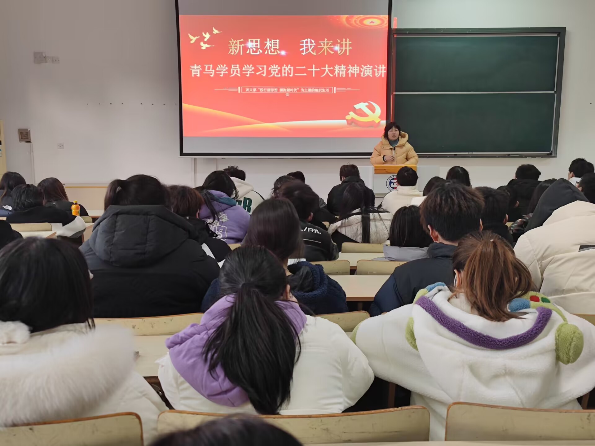 范小军老师将自己对二十大精神学习的理解全数教予大家,并结合自身的日常生活和工作经验,从微入细、深入浅出,“原原本本学、踏踏实实干、清清白白做”,反复强调“勿以善小而不为,勿以恶小而不为”,指导我们做一个温柔且坚定的人,对别人善良,在不久的将来别人也会善待自己。吴青老师也给予我们未来方向,我们还年轻,未来有无限可能,道阻且长,行则将至,一步一步把自己该做的事情做好,努力学习该掌握的东西,方法总比困难多,冰雪融化了是因为太阳出来了。