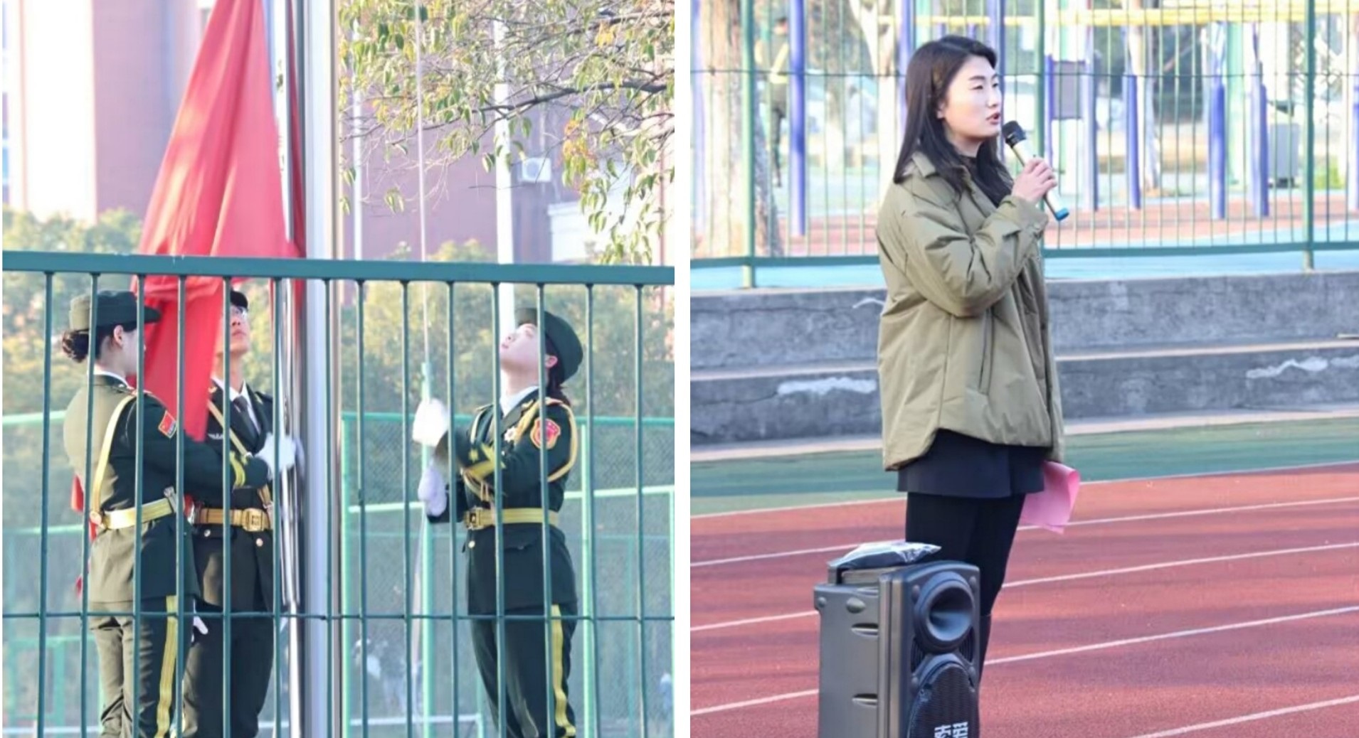 7时30分,升国旗仪式开始。在国旗护卫队的护送下,升旗手步入升旗台,伴随着激昂雄壮的《义勇军进行曲》,鲜艳的五星红旗冉冉升起。全体人员向国旗行注目礼、高唱国歌。