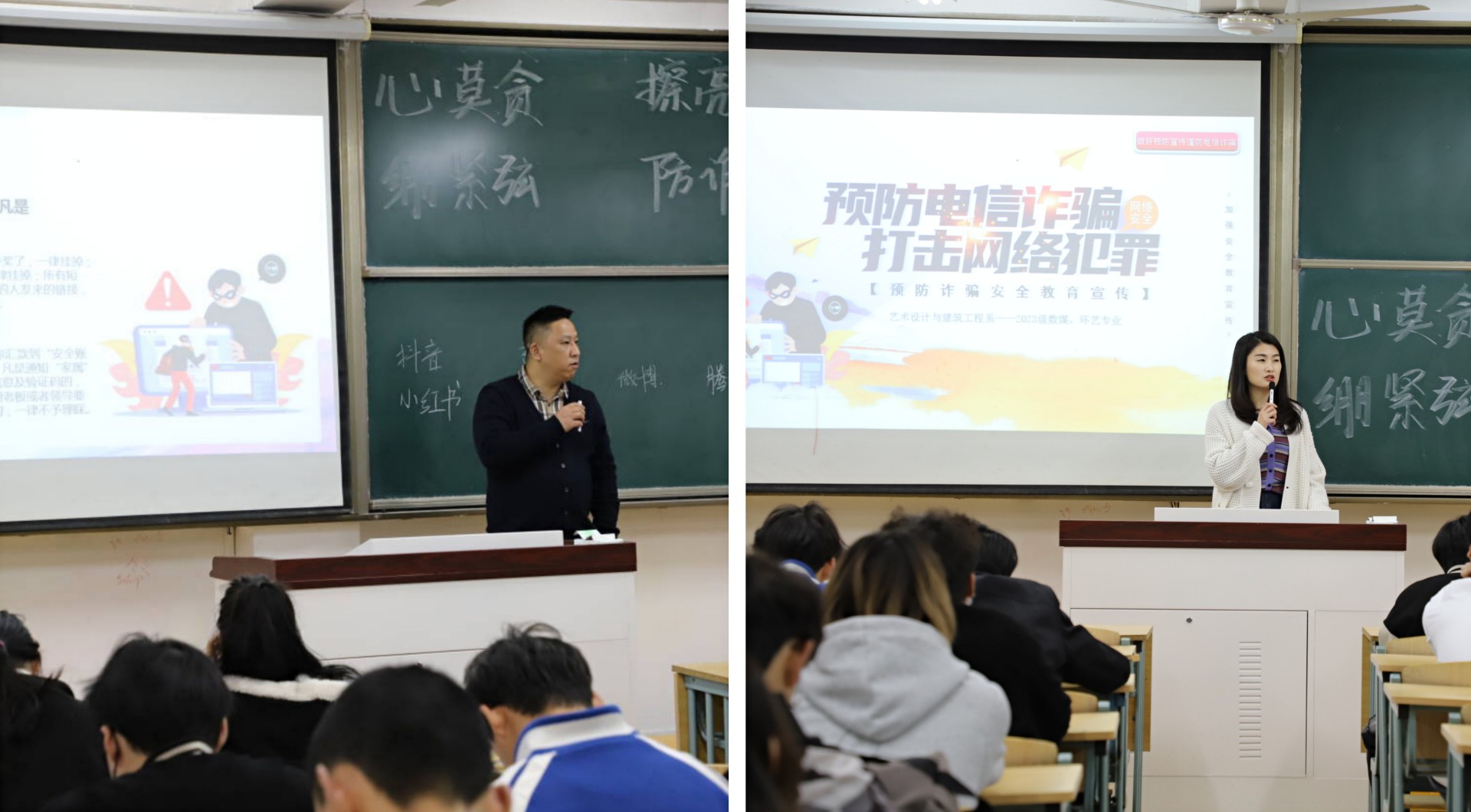 艺建系副主任陈宏波在发言中提出,社会上的诈骗事件层出不穷,有很多专门针对在校大学生的诈骗行为,不断有大学生上当受骗,我们必须提高警惕,保障自身人身财产安全。我校也发生过大学生受骗案件,尽管十三水官网 一再提醒,仍然有人被骗,这不仅仅是因为诈骗形式越来越多样化,很重要的一点是我们没有足够的警惕心,没能识破坏人的阴谋,从而落网。因此,十三水官网 也对防诈骗这一块看得很重,希望每个大学生都能具备一定的防范意识,减少诈骗行为的发生,营造良好的校园环境。