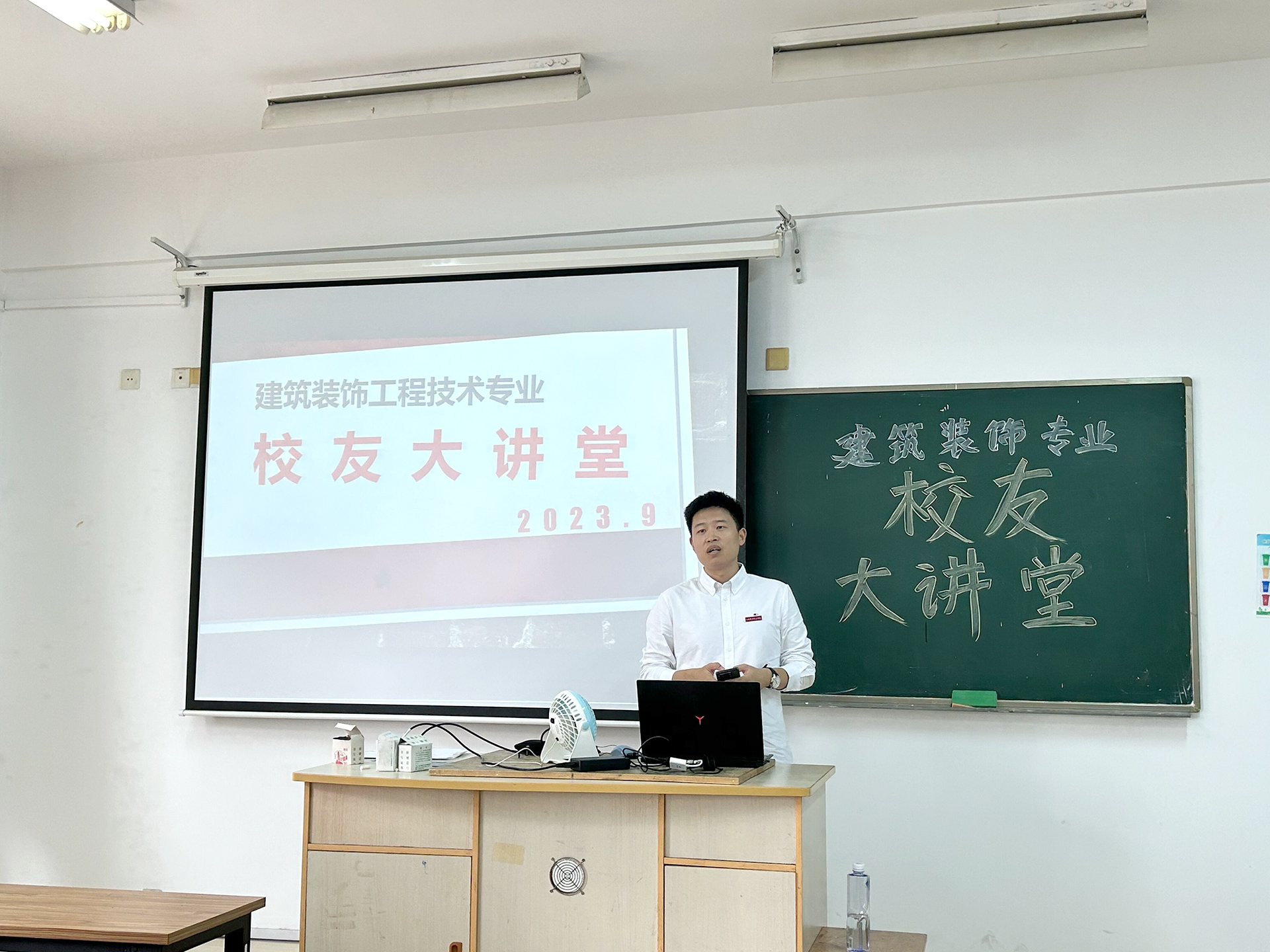 艺建系周副主任(主持工作)出席了本期校友大讲堂,对牛海涛同学的精彩分享表示了感谢,也对在场的建装班同学提出了殷切的希望,建议大家在目前的学习阶段多看、多听、多想,根据自己的实际状况探索学习新思路、新方法,做一个不落后新时代的大学生。