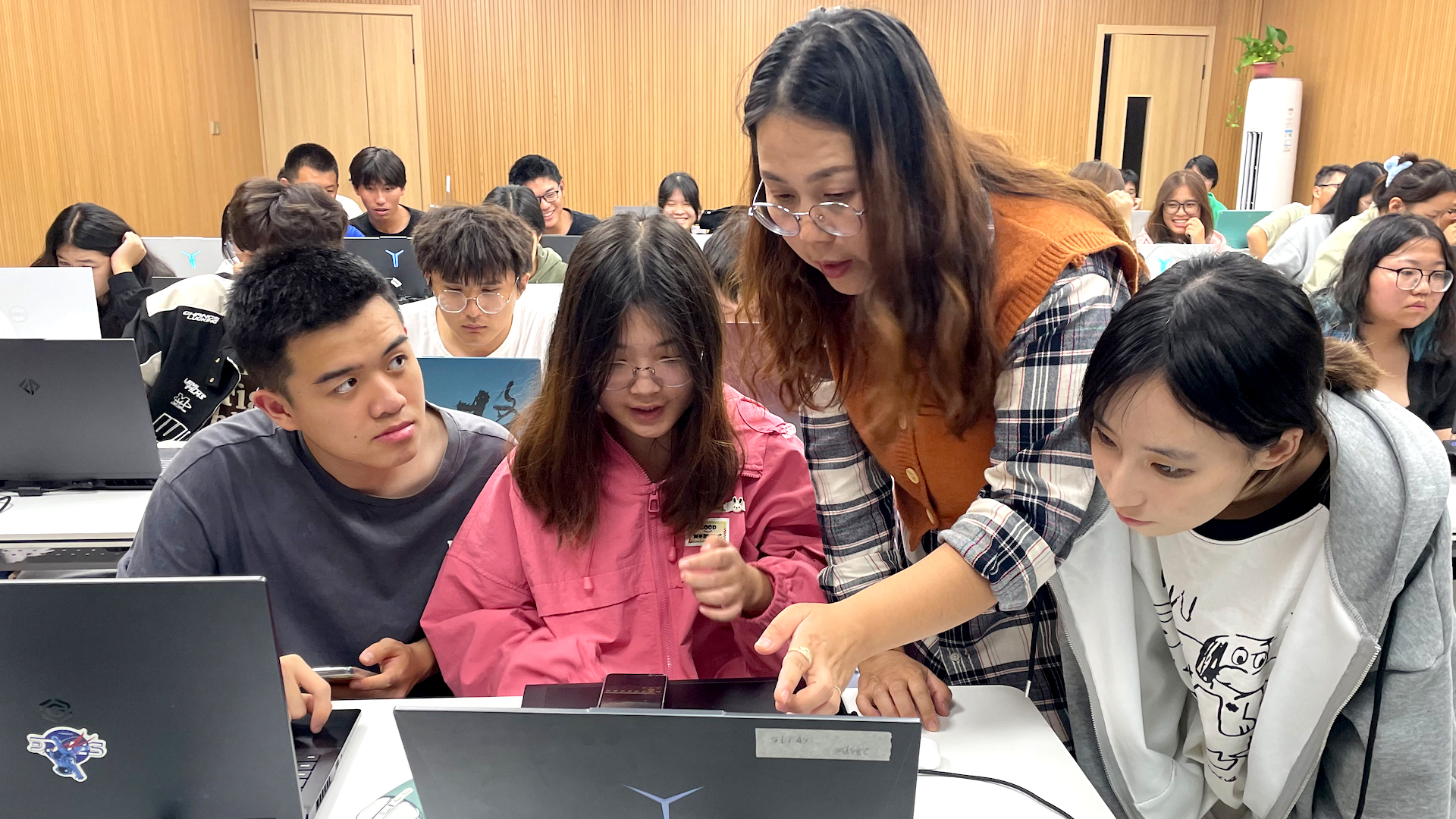 在讲座中,技术总监徐建喜老师向同学们介绍了元宇宙虚拟现实技术的广泛应用和无限可能,详细解释了如何将动漫专业技能应用到游戏设计和虚拟现实各领域;同时,还分享了行业中最新的发展趋势和前沿动态,让同学们对未来的职业规划有了更清晰的认识。在讲座后半程,寇世蜜老师现场带领同学们用虚幻引擎软件Unreal Engine进行项目实践,让大家有机会将理论知识运用到实际操作中。学生们充满热情地参与,积极提出自己的想法和问题,与公司专业人士进行了深入的交流和互动。这种亲身体验的方式,让同学们对元宇宙虚拟现实技术有了更深入的理解,也让他们对自己的专业前景充满了信心。