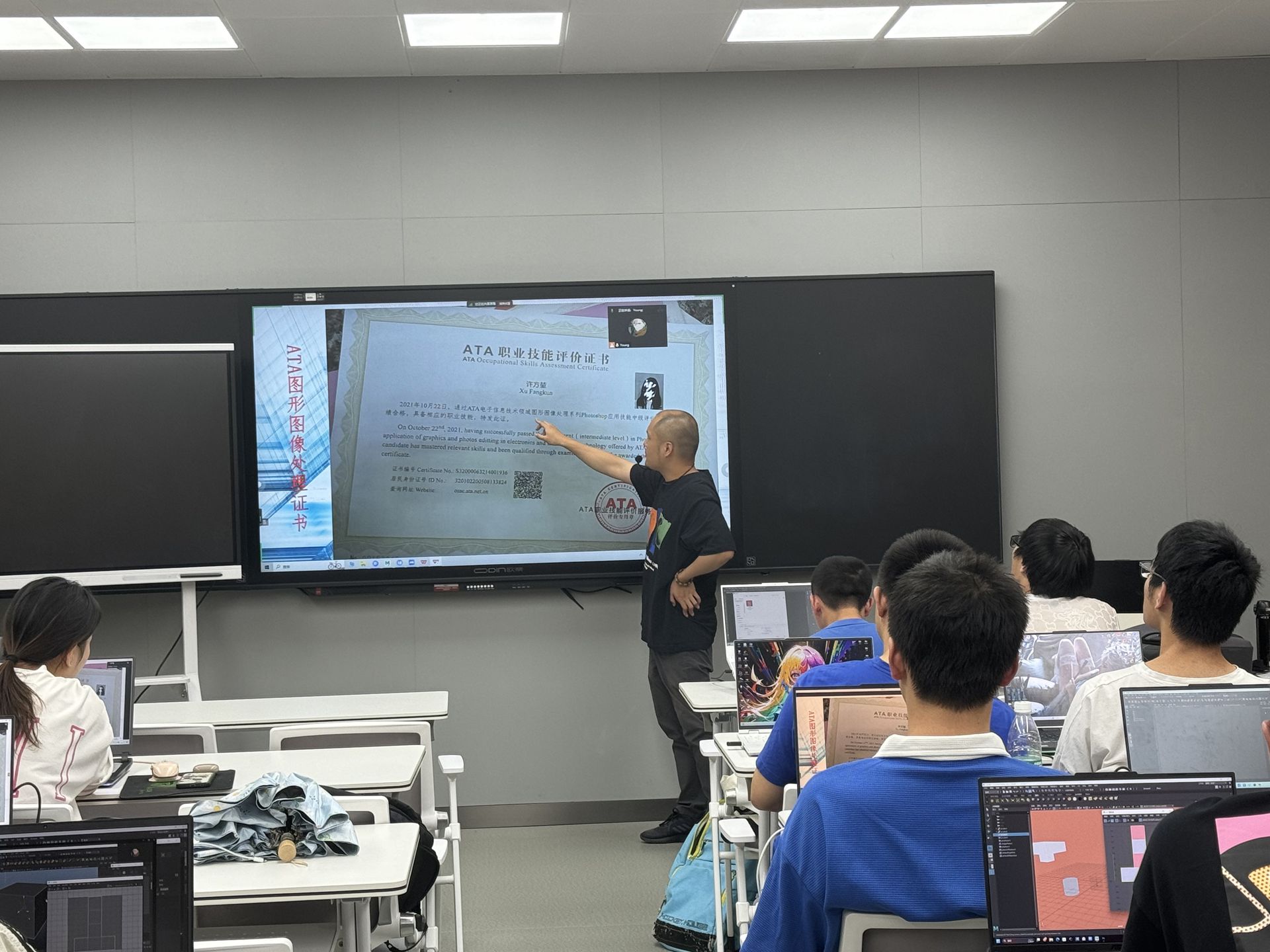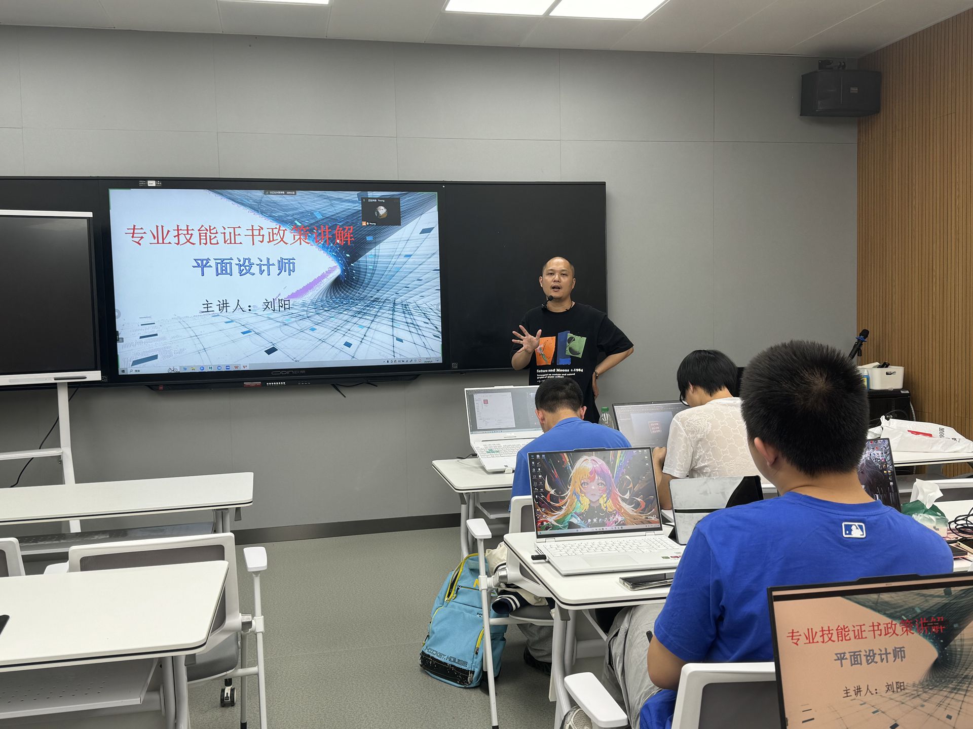 为进一步推动专业化人才的培养与发展,提高同学们对专业技能证书的认识和重视,艺术设计与建筑工程系动漫制作技术专业于6月3日成功举办了专业技能证书考证宣讲会,班主任刘阳老师主持会议。本次宣讲会旨在为我系学生提供详细的考证指南和政策解读,帮助他们更好地规划自己的职业发展道路。