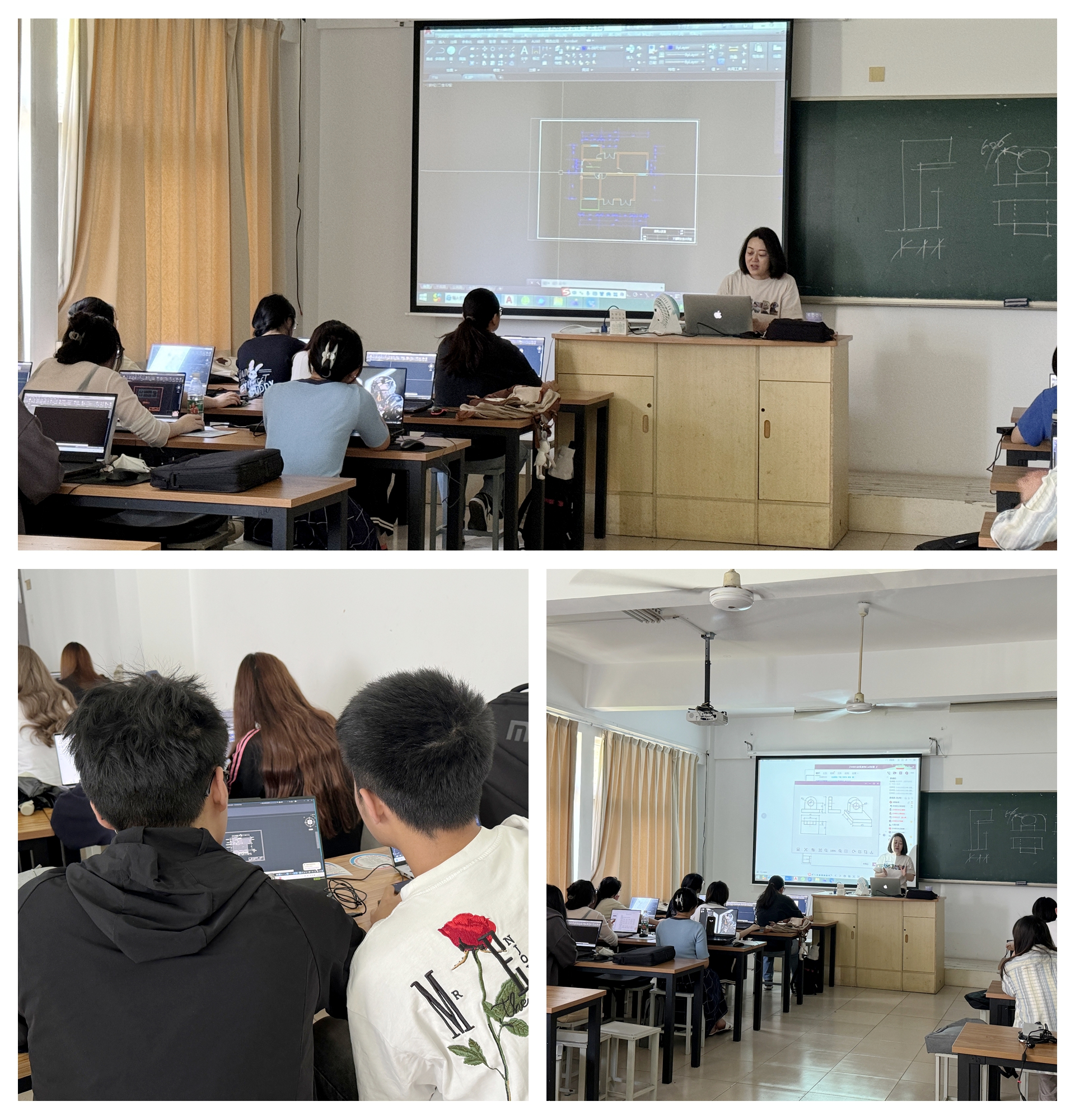 系主任和专业课老师们十分重视本次考试,并为此提前作好了各项充分准备。6月1日-6月20日,专业课老师安排制定每天的复习内容,耐心、细致地组织报名的学生集中复习CAD绘图知识,查漏补缺。辅导员魏玮组织同学们形成了学业结对帮扶小组,同学们充分利用课余时间进行练习,采取一对多学习帮扶,力求顺利通过CAD考证。