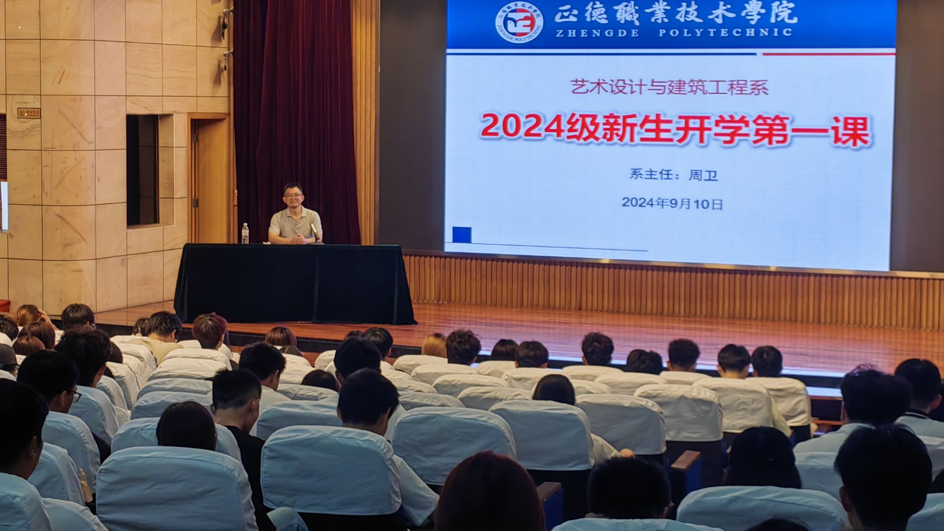 新学期,大一新生怀揣梦想踏入美丽的校园,以崭新的面貌迎接大学生活。为了快速引导新生了解适应大学学习生活,9月10日下午,艺术设计与建筑工程系系主任周卫在报告厅开展“系主任开学第一课”专题讲座,全体大一辅导员和新生参加。