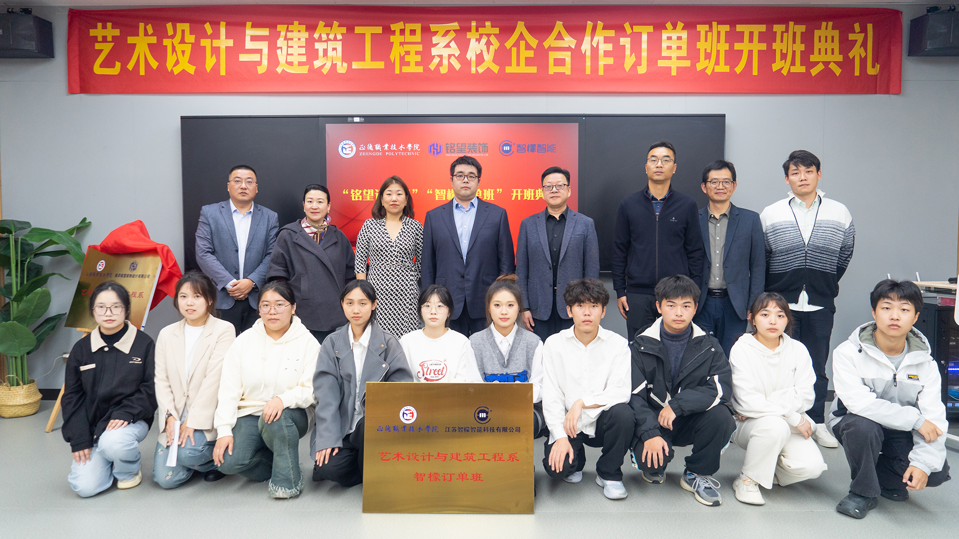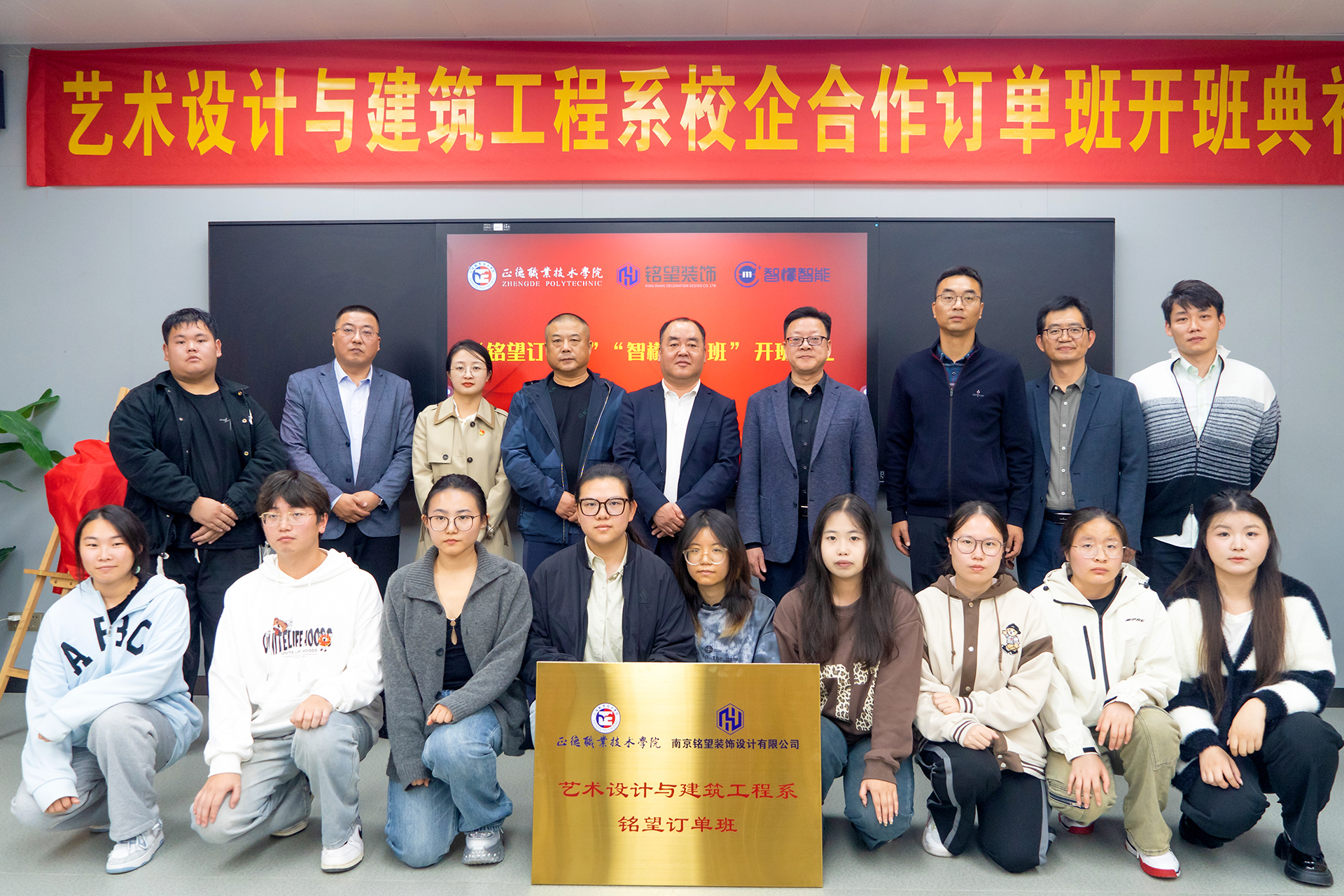 10月31日下午,十三水游戏 在一片热烈而庄重的氛围中,成功举办了与南京铭望装饰设计有限公司、江苏智檬智能科技有限公司合作的“铭望订单班”与“智檬订单班”首届揭牌典礼。这一事件标志着十三水游戏 在产教融合与校企合作的深化上取得了重要突破,坚实地向前迈进了一步。