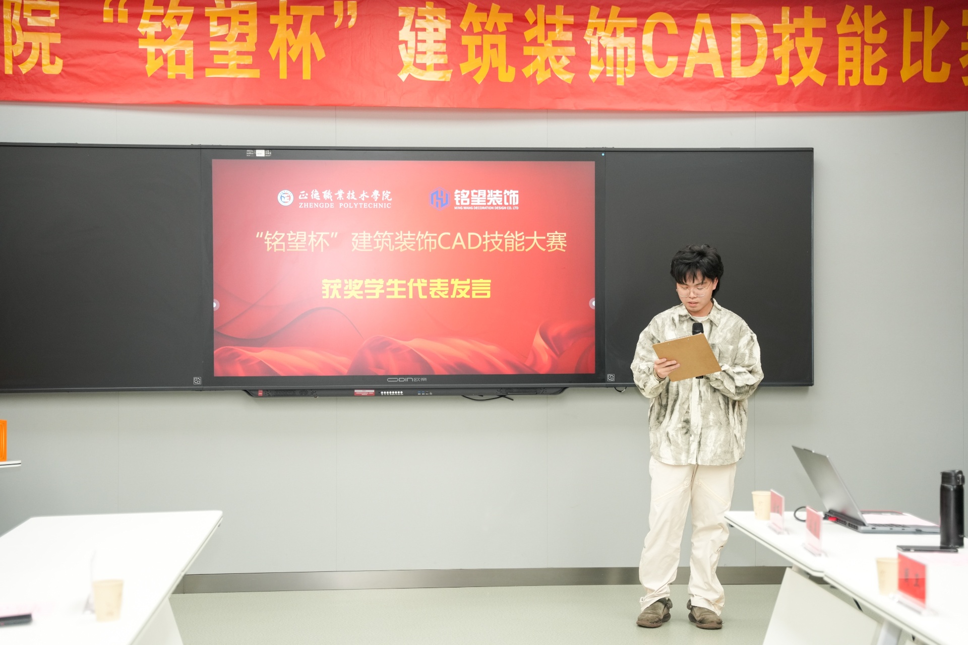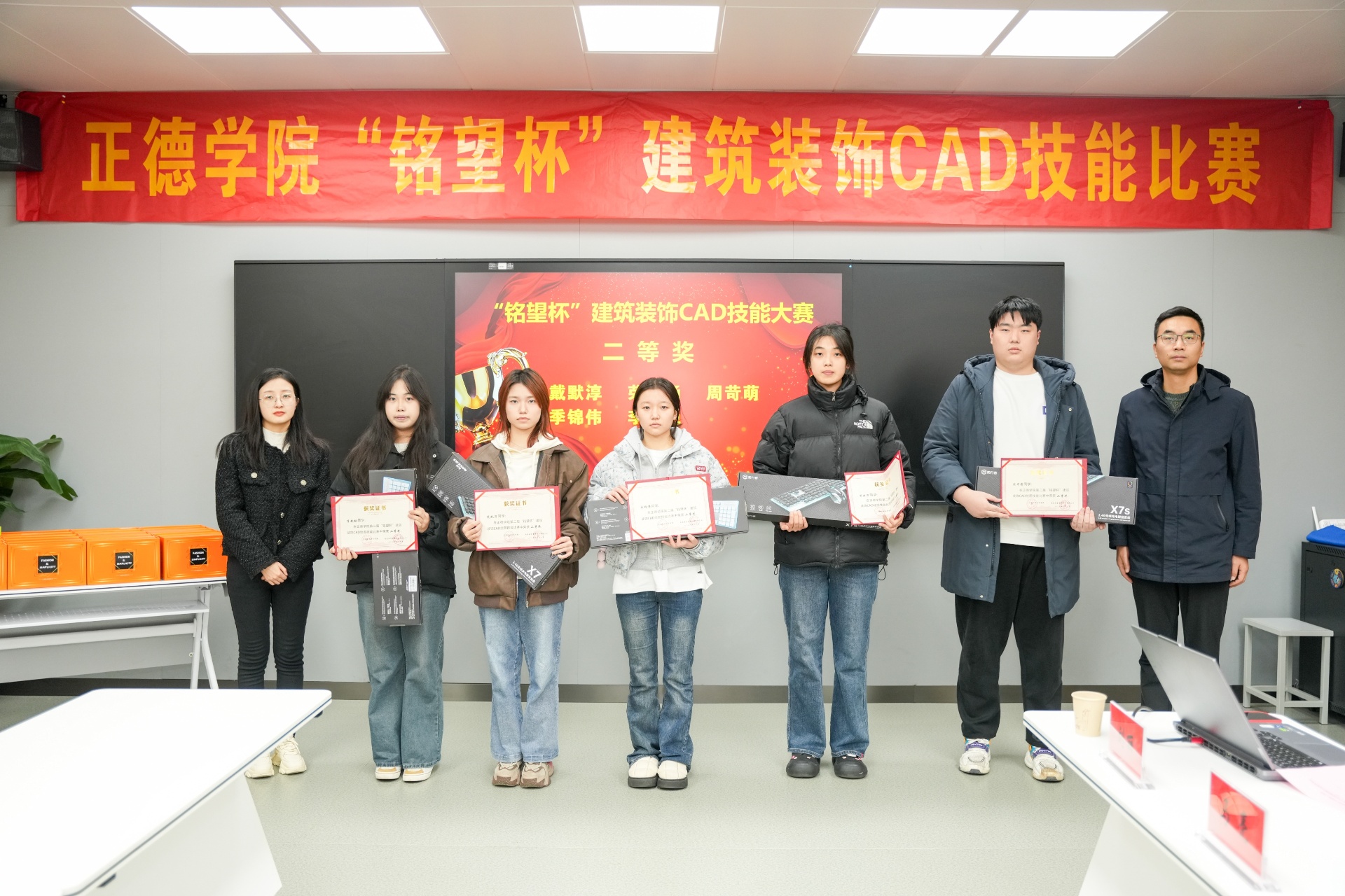 本次大赛面向2023级建筑装饰工程技术、建筑室内设计、环境艺术设计及工程造价专业的学生,旨在通过个人赛的形式,全面考察和提升学生的CAD绘图及效果图制作能力。经过激烈的角逐,共有30名学生成功入围总决赛,并评选出一等奖2名、二等奖5名、三等奖8名以及若干优胜奖。南京铭望装饰设计有限公司为获奖学生提供了丰厚的奖品,以表彰他们在比赛中的卓越表现。