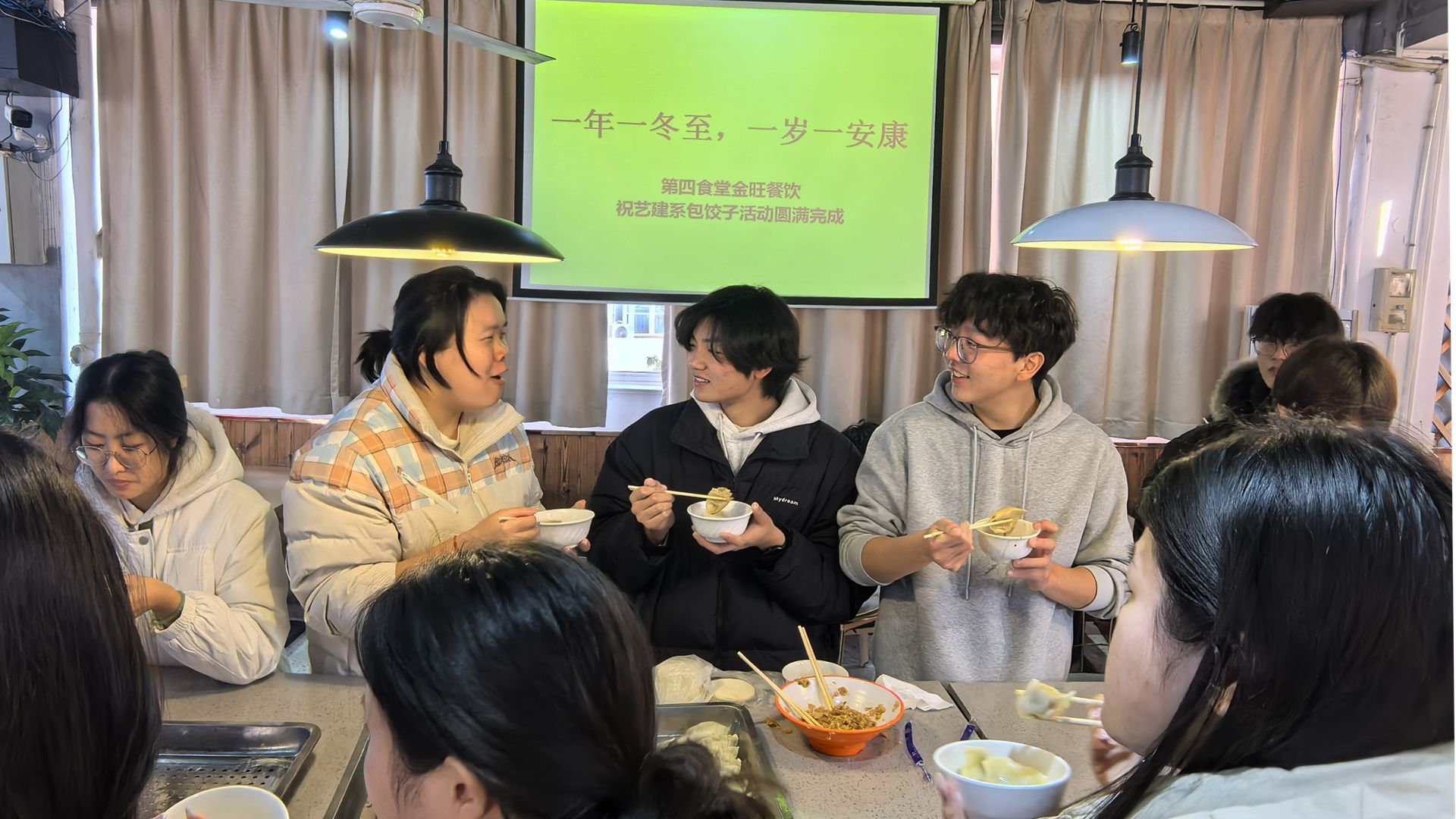 食堂二楼开展“情暖冬至,温暖艺建”冬至包饺子活动。艺建系辅导员和学生代表40余人参加本次活动。