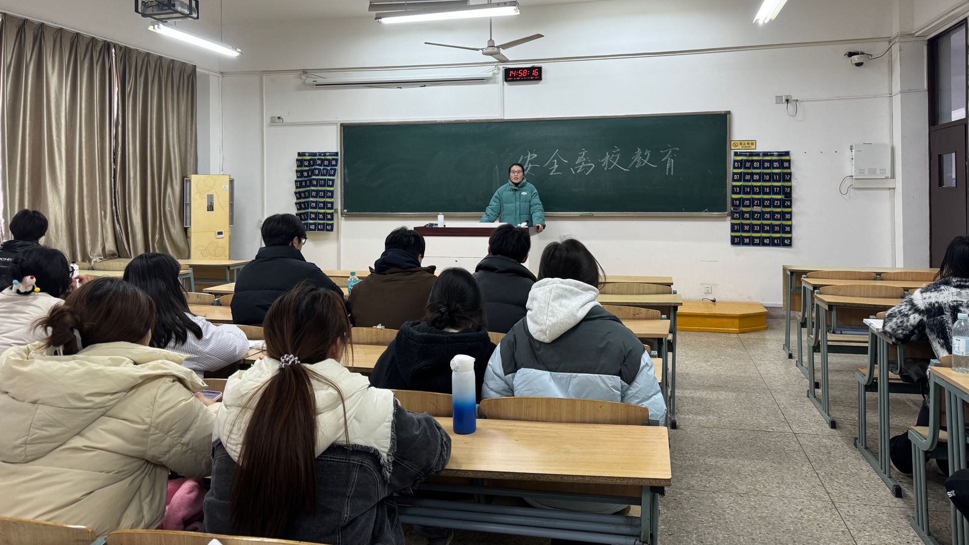 关于寒假安全离校的具体要求和安排。她强调了离校前宿舍安全检查的重要性,提醒大家务必关闭电源、锁好门窗,确保个人财物的安全。同时,邓红芬老师还就寒假期间的出行安全、网络安全、饮食安全等方面进行了详细讲解,引导学生树立正确的安全观念,提高自我保护能力。