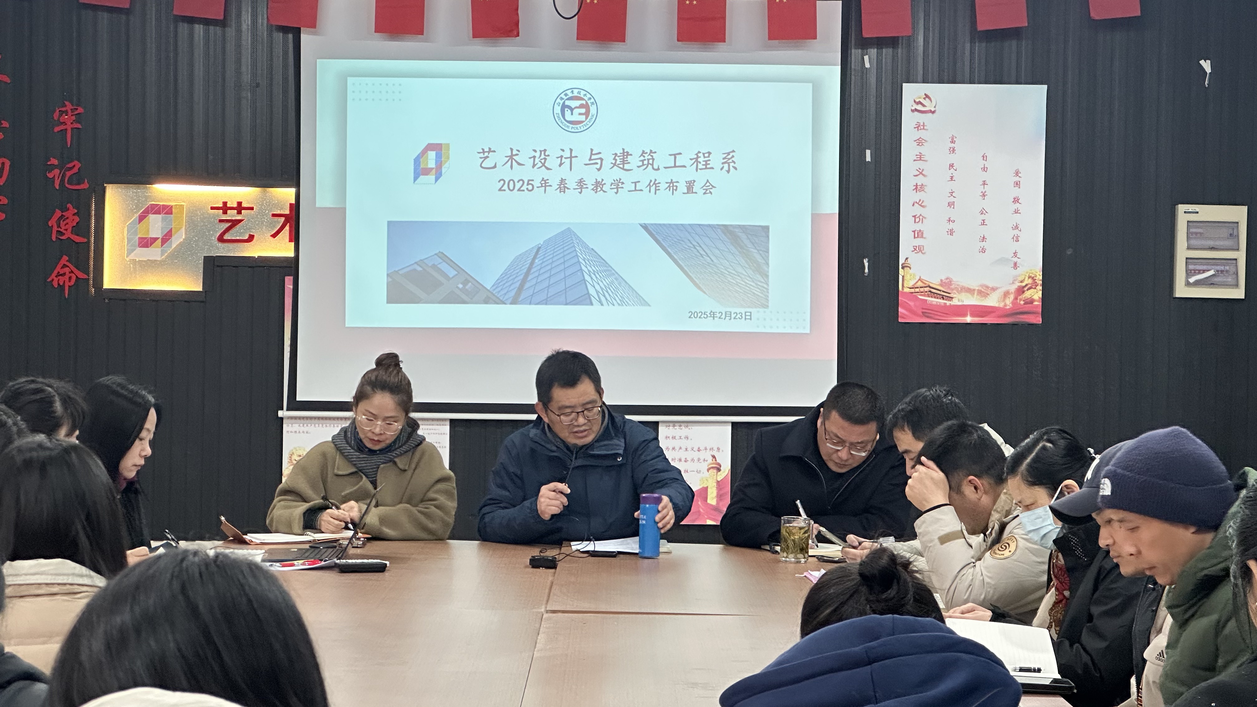 为进一步凝心聚力,确保新学期各项工作有序开展,2月23日上午艺术设计与建筑工程系召开新学期工作会议,会议旨在以统一思想为基石,以创新行动为驱动,全面开启教育教学质量提升的新征程。会议由系主任周卫主持,全体教职工参会。
