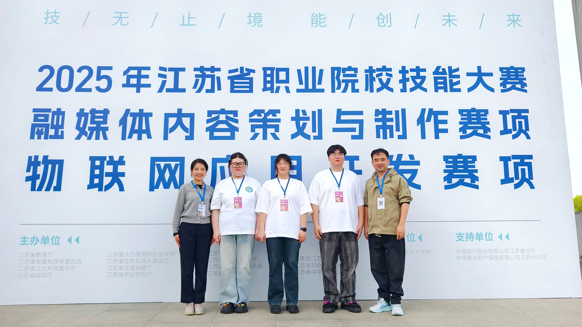 2025年4月16日,由艺术设计与建筑工程系葛雯、王子烜指导,学生刘语譞、耿思思、张毅武组成的参赛团队,在2025年江苏省职业院校技能大赛高职组融媒体内容策划与制作赛项中,与来自全省47所高职院校的代表队同场竞技,以扎实的专业技能和默契的团队协作,最终荣获赛项团体三等奖。
