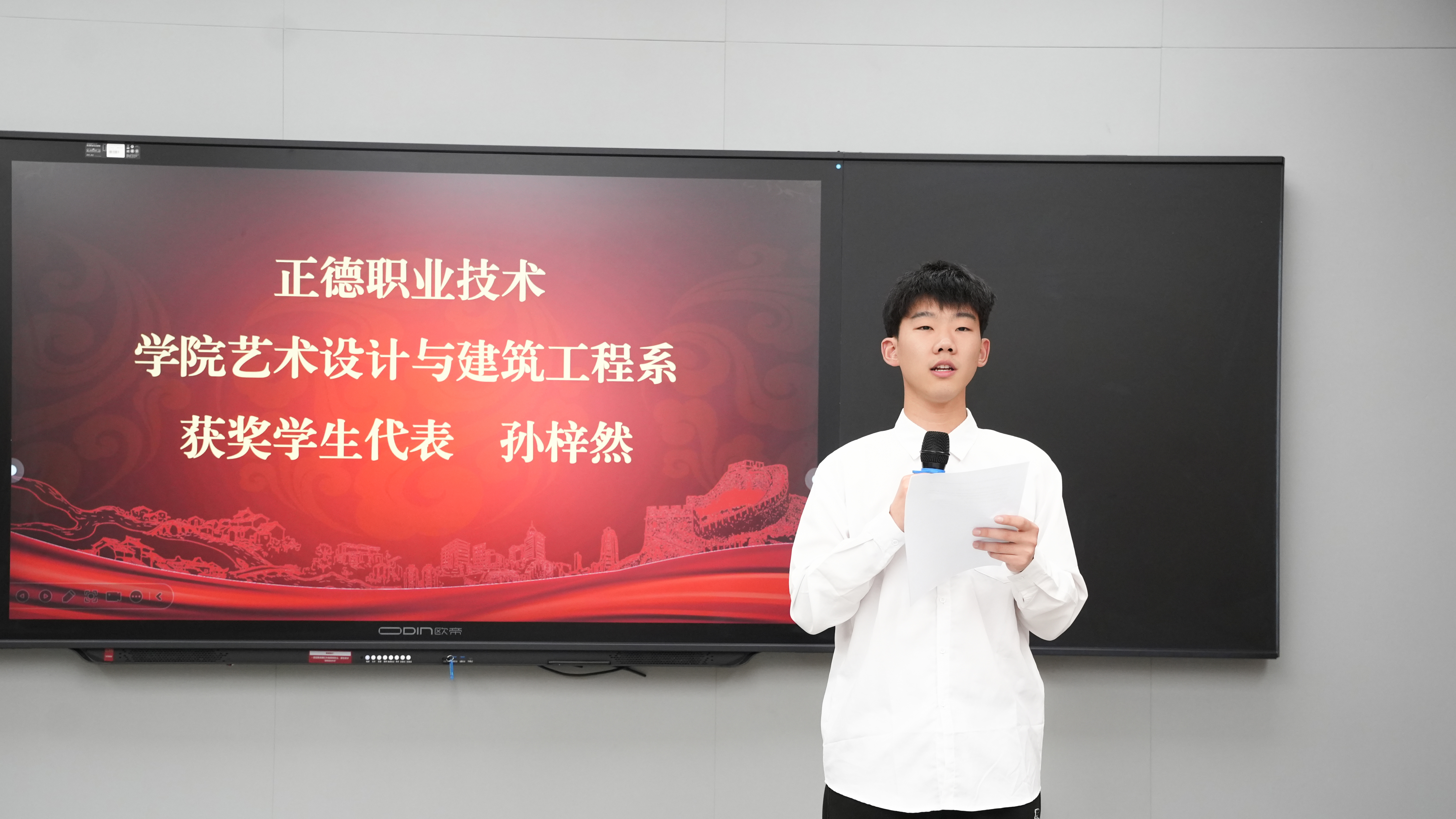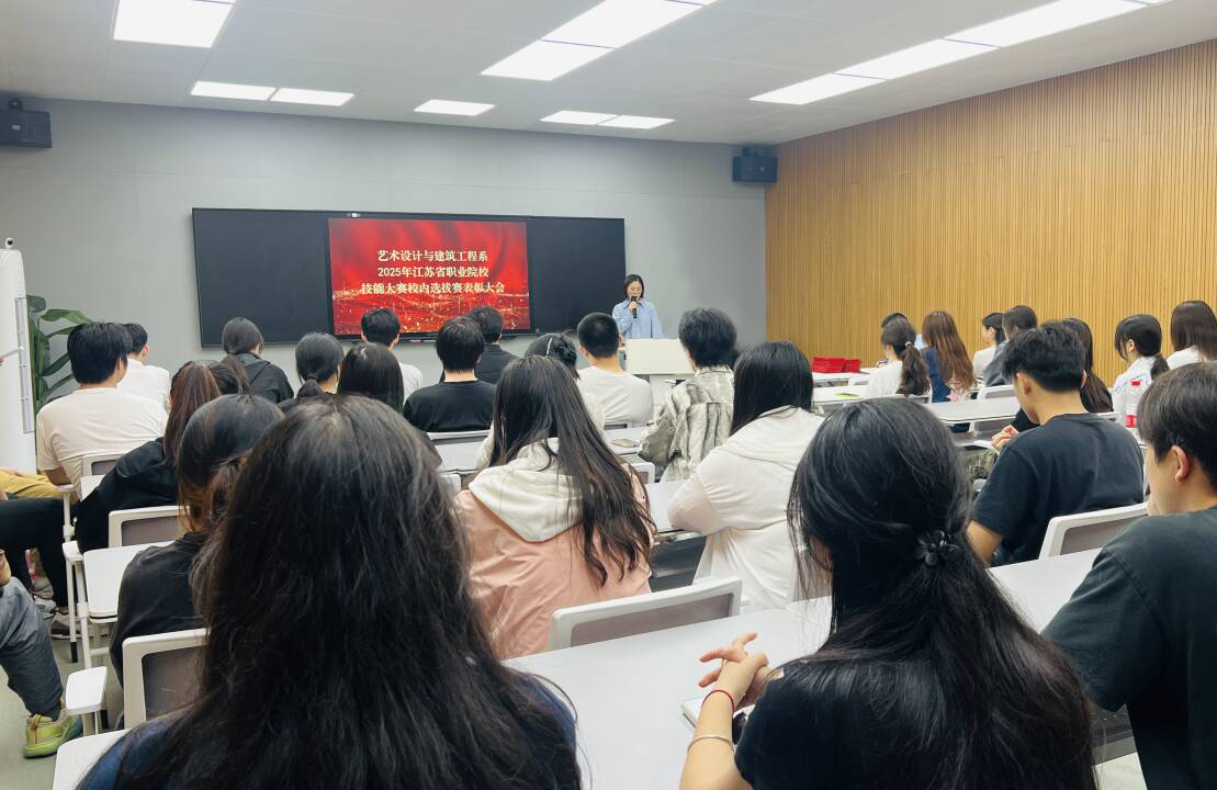 为表彰在技能大赛中表现卓越的师生,激发全体师生对专业技能的追求热情,进一步弘扬“工匠精神”,营造“以赛促学、以赛促教”的良好氛围,推动艺术设计与建筑工程系教学质量与人才培养水平迈向新高度,5月15日下午,艺建系在数字媒体中心隆重召开2025年江苏省职业院校技能大赛总结暨校内选拔赛表彰大会,对在本届大赛中取得优异成绩的师生进行表彰。系负责人、各专业带头人、全体指导教师、2023级辅导员及获奖学生代表等60余人齐聚一堂,共同见证这一荣耀时刻。