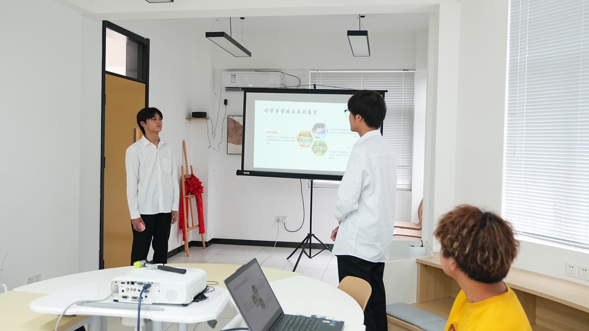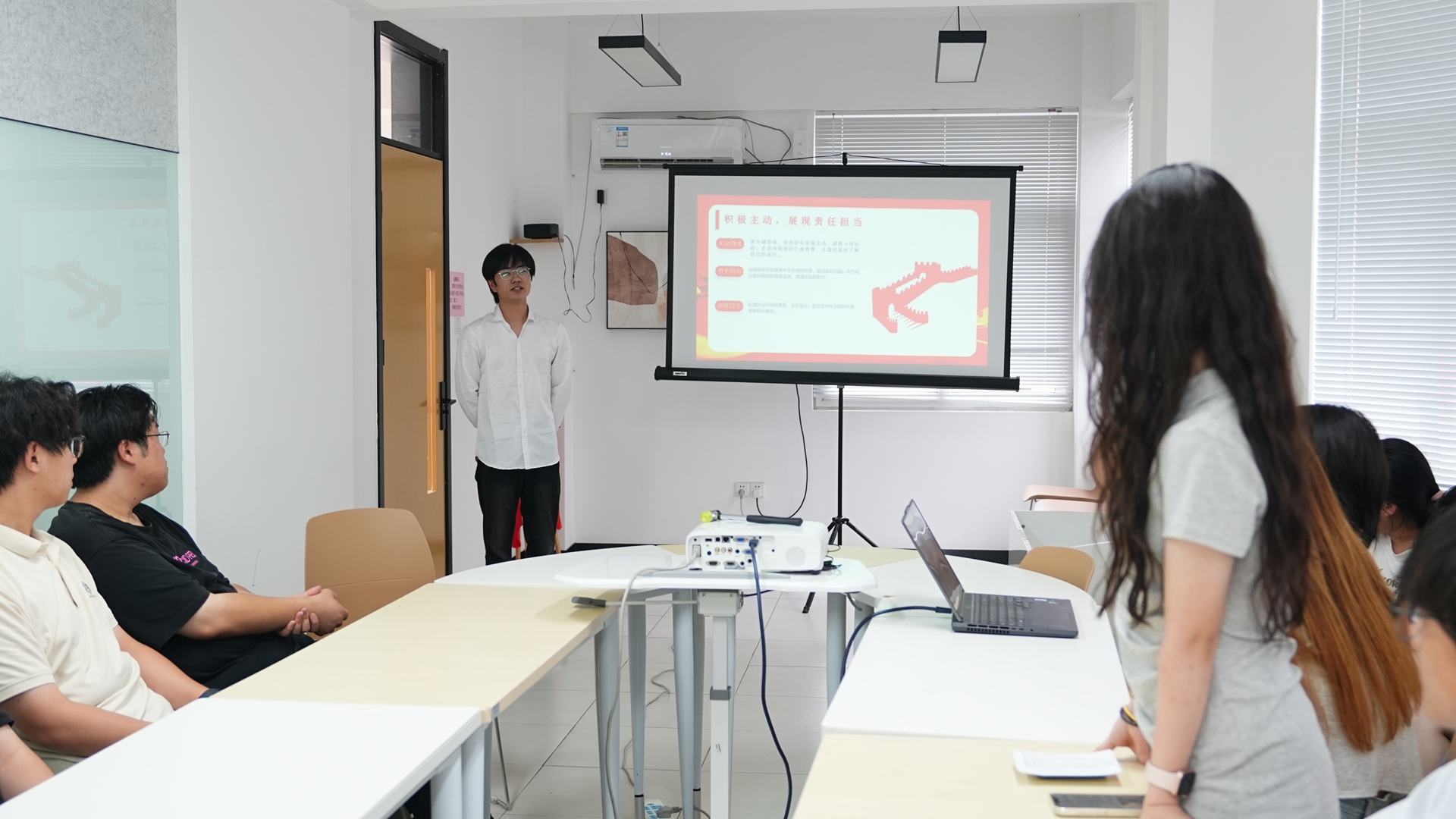在两位学长分享结束后,现场进入了互动交流环节。叶欣玥、任秋朴两位同学积极提问,就学生会工作、党员发展、学习方法等方面的问题与学长们进行了深入的交流。学长们耐心地解答了同学们的疑问,并给予了宝贵的建议和指导。现场气氛热烈,同学们纷纷表示受益匪浅。