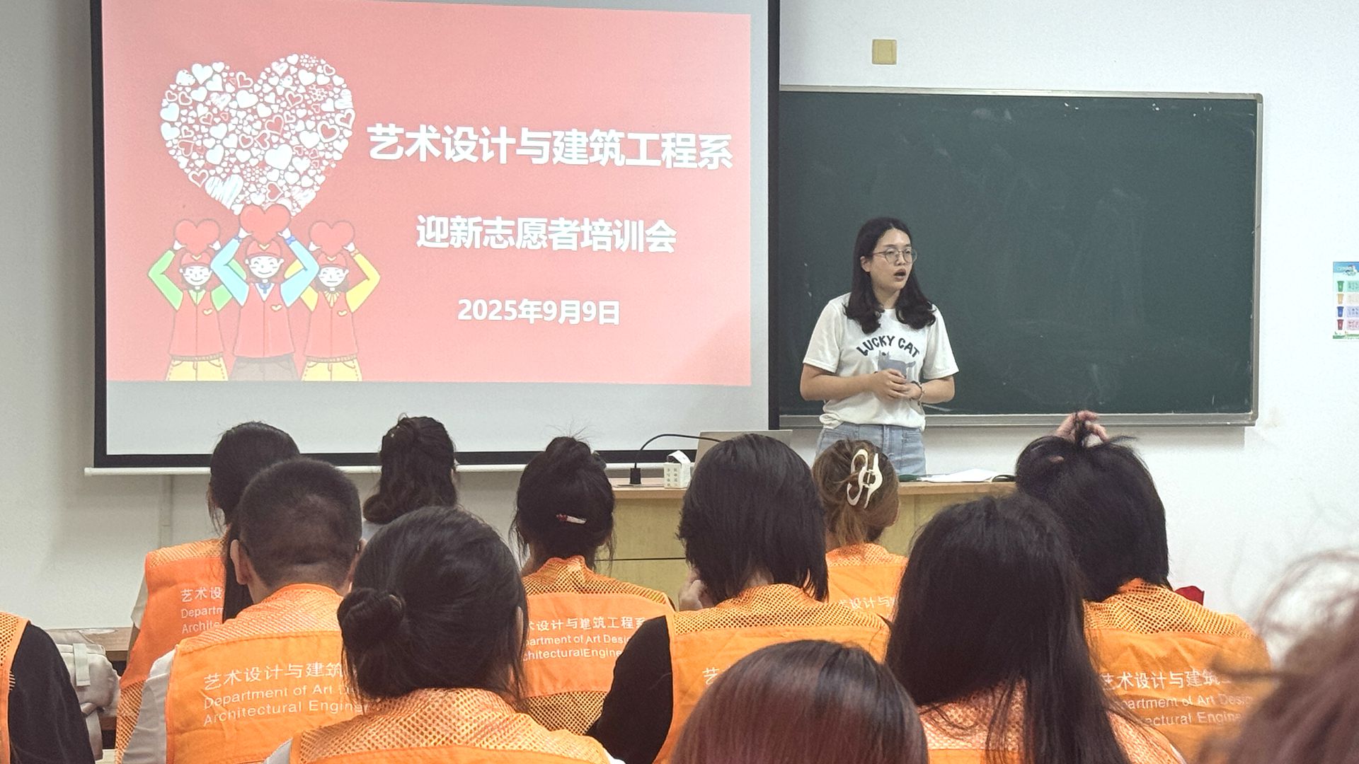 9月9日,2025迎新志愿者培训会在艺建系团总支书记王思思的主持下顺利召开。培训会上着重强调了志愿者在迎新过程中所肩负的重要责任,鼓励大家以热情洋溢、积极向上、无私奉献、友爱互助的精神面貌,迎接即将到来的学弟学妹们,全力为新生打造一个安全、便捷、温馨的报到环境。