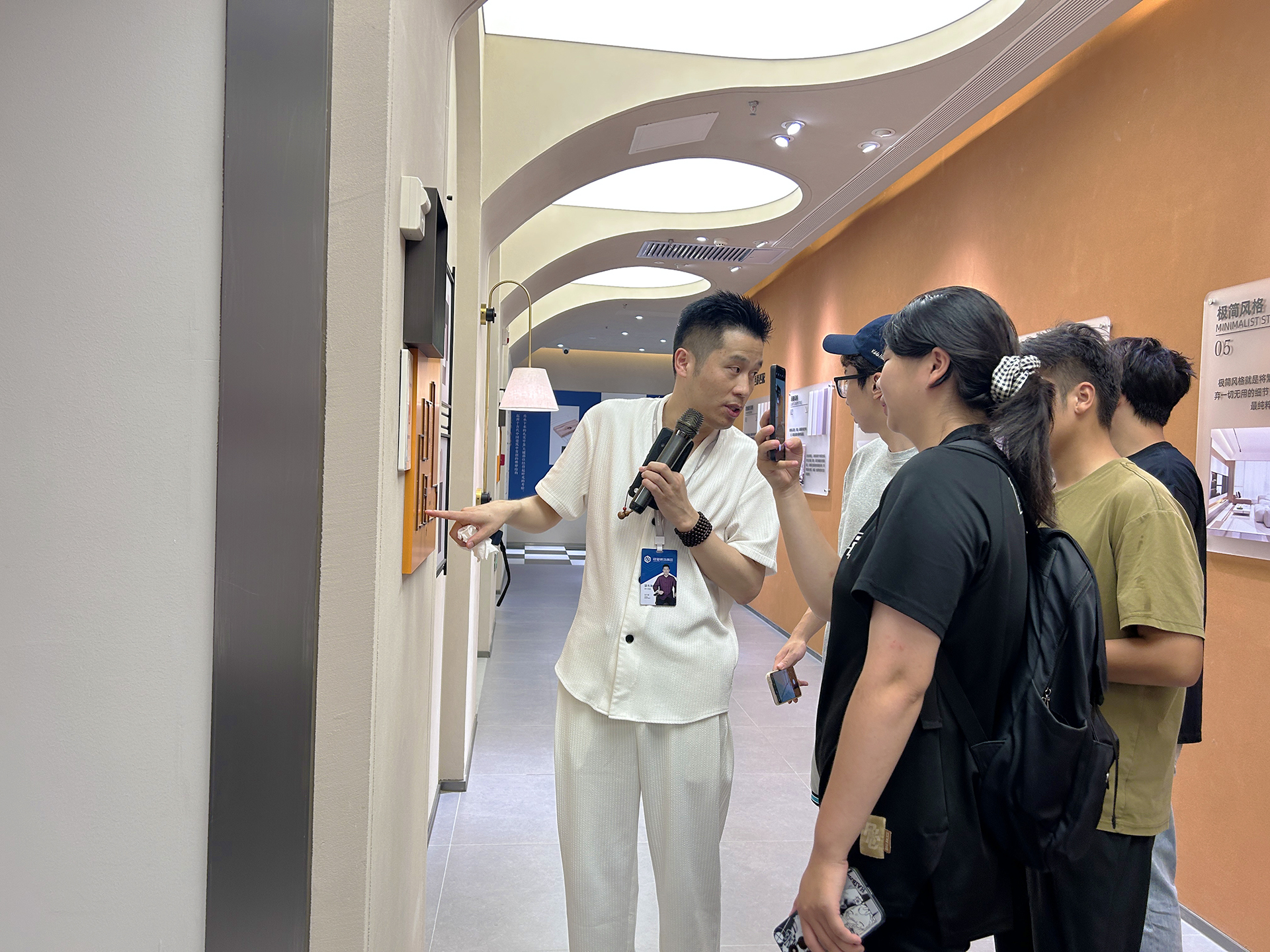 之后,铭望装饰设计总监并担任“铭望订单班”的企业导师的梁东海老师带领同学们分别参观了一层的企业品牌文化展示区、二层的多风格多户型的1:1实景样板间及三楼的家装工艺展示、材料展示(瓷砖、地板、橱柜、洁具等)。结合目前的《住宅空间改造设计》课程,梁老师针对目前市场的行情重点讲解了适老化设计的基本原则,强调了住宅空间改造设计中的重要事项,在某些重要知识点上,还采取一问一答的方式与学生进行互动教学。课堂上讲到的设计风格、空间布局要点直观地展示在面前,各种装饰材料也通过一个个样板间让同学深刻地体会到。同学们面对行业中对技能的真实需求点,纷纷表示回到十三水游戏 后将更加关注装饰材料、人体工程学等重要知识的学习,首先从画好一张专业的平面布置图入手。