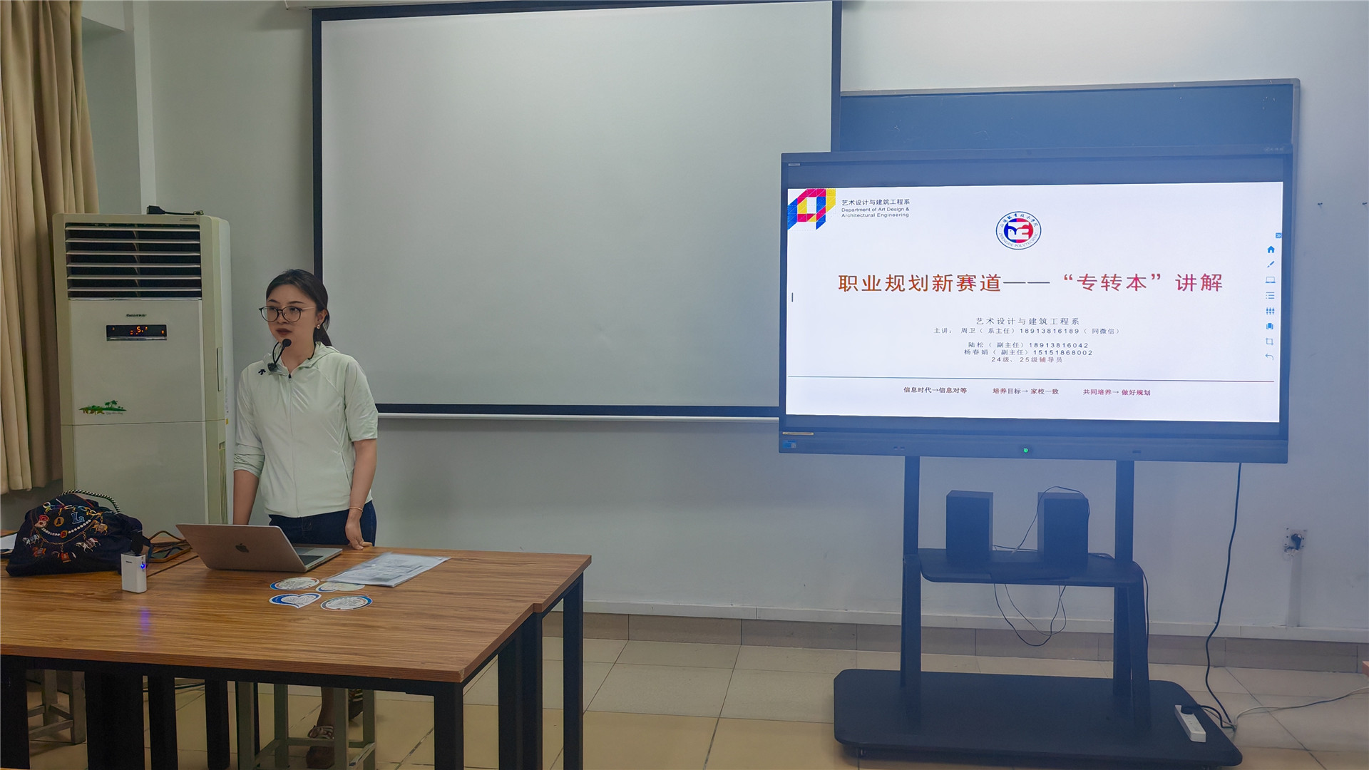 2025年9月19日,艺术设计与建筑工程系面向2025级专转本意向新生举办了一场以“筑梦本科·规划先行”为主题的升学规划讲座。系部优秀教师王陶结合自身教学经验与行业实践,从学业规划、技能提升、实战策略三个维度为新生提供系统性指导,助力学生科学规划专科到本科的进阶之路。
