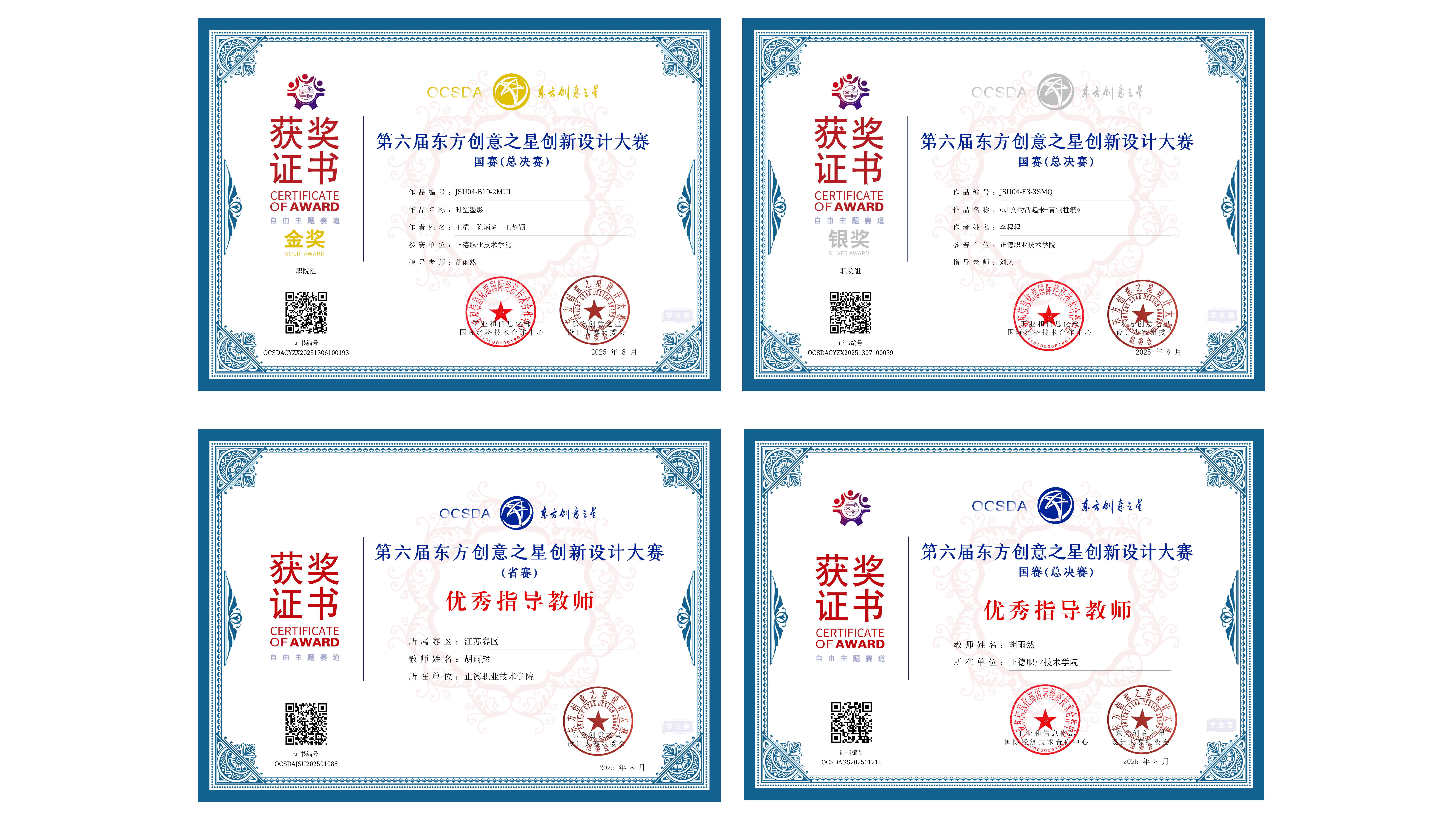 在刚刚落幕的第六届“东方创意之星”设计大赛中,十三水游戏 艺术设计与建筑工程系数字媒体技术专业24级学生取得了优异成绩,展现了卓越的创造力和专业技能。胡雨然老师凭借出色的指导,分别荣获省赛和国赛优秀指导教师奖,彰显了十三水游戏 专业教学的高水平。