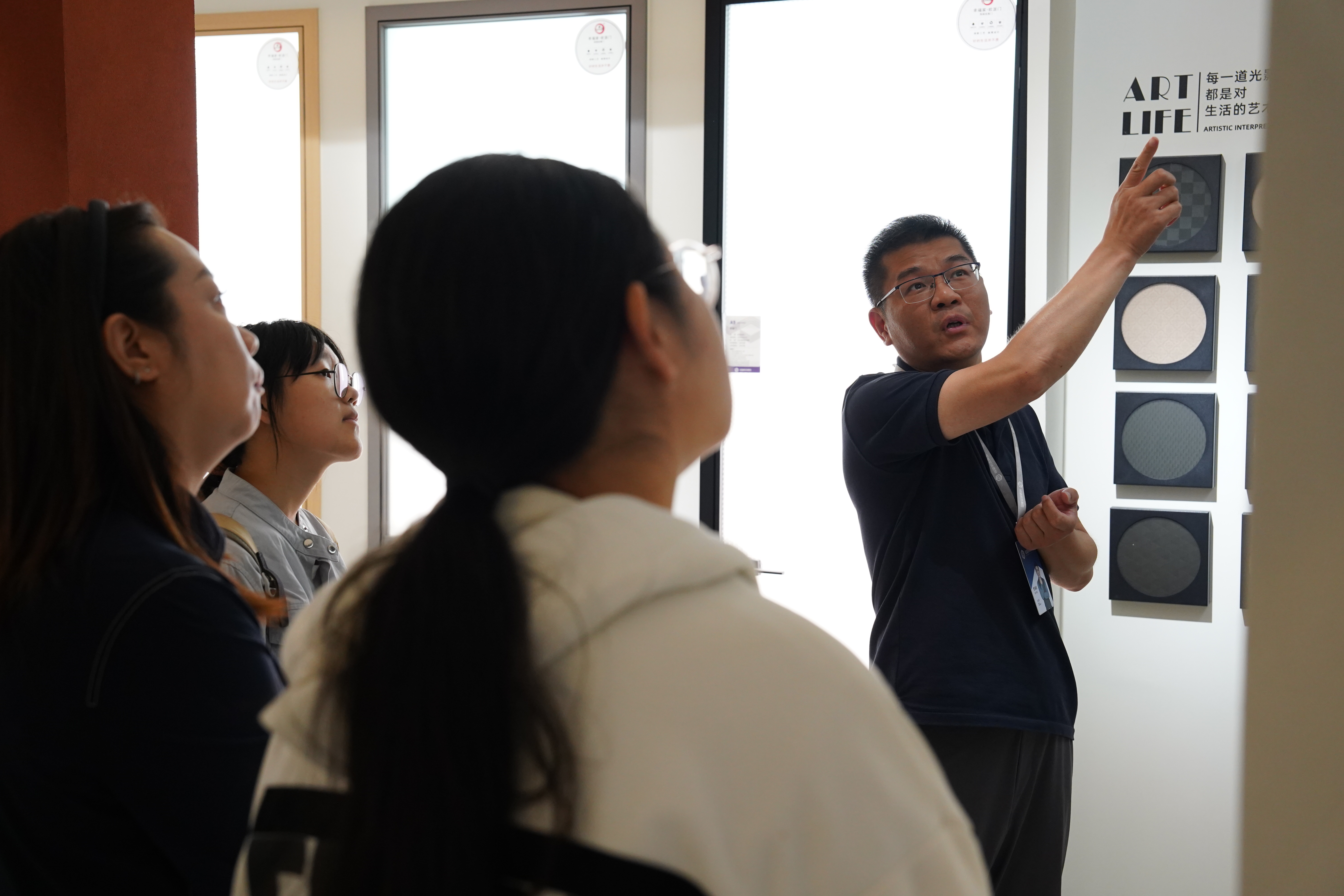 在铭望装饰饶经理的引导下,同学们依次参观了公司的设计工作室、智能家居展示区以及全屋定制项目施工现场。从创意迸发的设计蓝图,到科技感十足的智能家居系统,再到严谨规范的施工一线,多维度、全流程的实地展示,让同学们对“全屋定制”与“智能家居”有了前所未有的直观认识,对建筑装饰行业的运营流程与关键环节建立了清晰的框架。