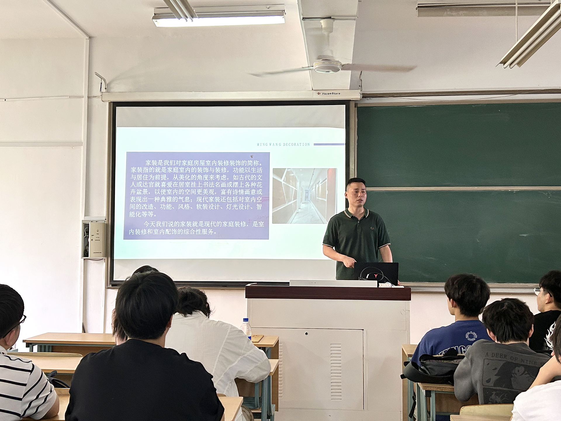 聘任仪式之后,吕老师为建筑室内设计专业、环境艺术设计专业和建筑装饰工程技术专业的22级、23级同学上了精彩的一课。专家讲堂的题目是:零距离学习装饰工程项目全流程。吕老师结合具体的工程项目案例,讲解了家装施工工程的全流程,涵盖开工仪式、拆粉墙、水电交底及施工、瓦工木工油漆施工、主材家具安装等所有环节。吕老师幽默、自然的教授风格吸引了不同专业、不同年级的同学们,特别是精彩的案例解析,让同学们犹如身临其境,对施工工艺的相关细节学习相比课本透彻了很多。