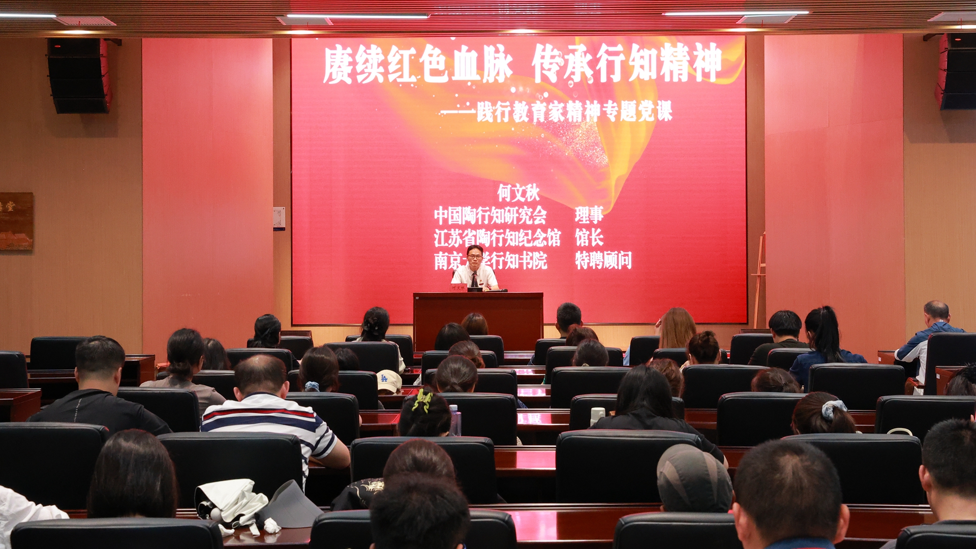 接着,南京晓庄十三水官网 陶行知研究院党支部书记、江苏省陶行知纪念馆馆长何文秋,以其深厚的学术功底和丰富的实践经验,为大家带来了一场主题为《赓续红色血脉,传承行知精神》的专题党课。何馆长从陶行知先生“捧着一颗心来,不带半根草去”的教育誓言出发,系统解读了陶行知教育思想的核心要义,深入剖析了“生活即教育”“社会即十三水官网 ”“教学做合一”三大理念的实践价值。他特别指出,陶行知先生的廉洁奉公、生活简朴精神,与新时代师德师风建设高度契合,是全体党员教师学习的典范。他呼吁全体党员教师以行知精神为镜,严守职业操守,杜绝教育腐败。他引用习近平总书记多次提及的陶行知名言“千教万教教人求真,千学万学学做真人”,勉励教师们“以真为魂,以廉为基”,做学生成长路上的引路人。何馆长的党课内容丰富、思想深刻,使在场的每一位党员都深受启发。