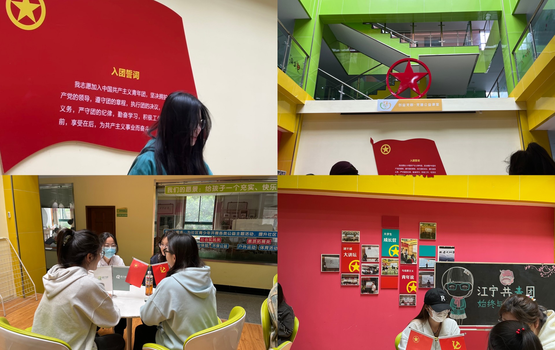活动开始同学们首先一起参观了青年茂总部青年学习大讲堂、江宁区青年志愿者指导中心、青年公益领袖营、社会组织青少年创新项目工作室、社会组织发展中心、心理咨询室、艺术课堂等。江宁青年茂是江宁共青团社会资源与工作力量的总部基地,全区青年之家总部。这里既是直接联系服务青年、培育孵化青年社会组织的阵地,也是青年组织充分发挥组织功能、精准服务共青团和青年工作的重要载体。