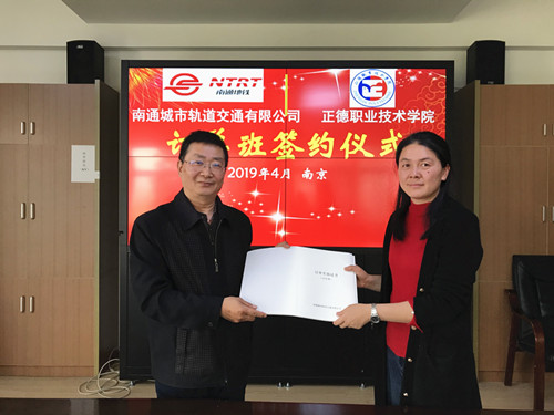 4月12日,十三水官网 汽车工程系举行与南通城市轨道交通有限公司的首届订单班开班暨签约仪式,该系主任赵桂良、南通城市轨道交通有限公司人事主管邵春云共同出席了签约仪式,12名学生成为了订单班首批学员。
