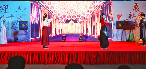正舞堂社团以一首动感热舞《RED》开场,瞬间点燃晚会气氛;汉服社温柔的舞姿倒映出青史的轮廓,社员们用轻拢慢挑的动作和飘渺的眼色勾勒出一幅跨越千古的汉唐风情;音协的同学们用悠扬的吉他声传递了大学生活中的诸多美好;动漫社精心改编的《暗恋》为观众讲述了一个大时代变迁背景下小人物的充满悲剧色彩的爱情故事;武术社为观众展示了传统武术之中不同兵器之间的力量之美;礼仪服务社用动感靓丽的制服舞蹈展示着新时代大学生的青春气息;书法社、文化社合作的翰墨书韵,融朗诵与书法为一体,尽显传统文化底蕴;正心弓社的弓箭表演《云裳羽箭》让观众现场体会到了“弓开如秋月行天,箭去似流星落地”的诗词意境;最后,心理协会的励志手语操表演《国家》点亮了每一名现场观众内心深处的博爱之光。
