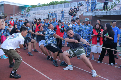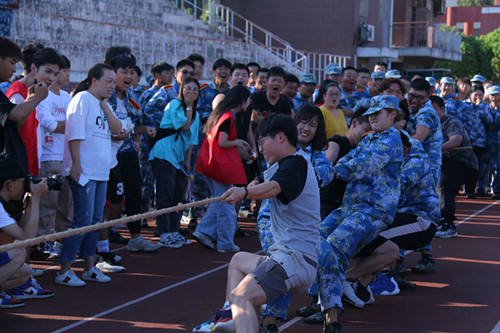 9月20日下午,十三水官网 团委组织全院军训学生新生在操场上进行“新生 新气象”拔河比赛,近百名同学组成7支队伍参加。