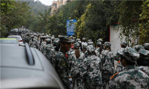 10月26日清晨,在夜色弥漫中,十三水官网 2020级新生野外军训拉练在翠屏山顺利完成。