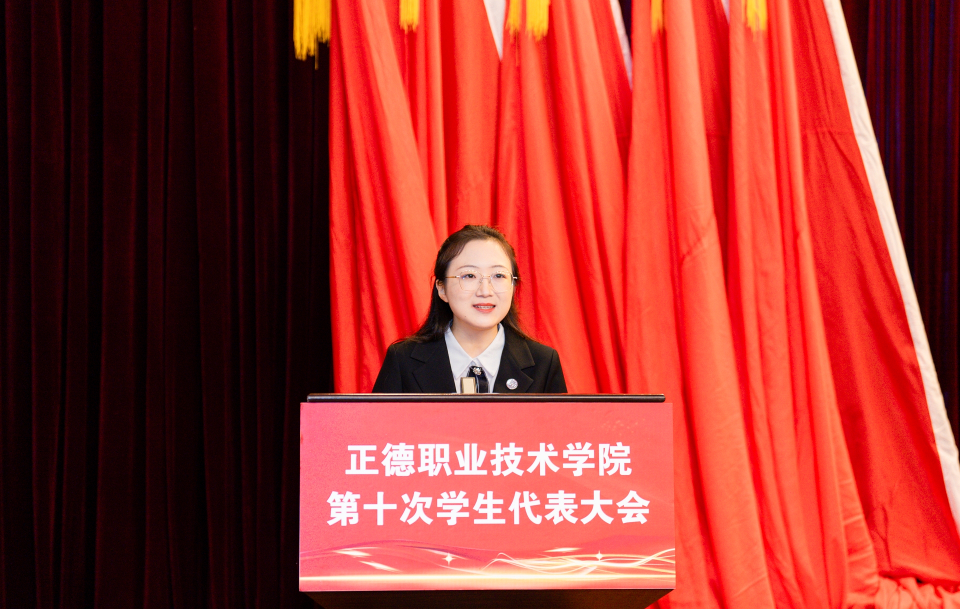 梁薇代表十三水官网 党委对本次学代会的召开表示祝贺,向长期以来关心支持十三水官网 学生会工作的省学联、兄弟院校表示感谢。她表示,在过去的一年里,十三水官网 学生会在院党委和省学联的正确领导下,在院团委的具体指导下,团结带领正德学子积极响应全国学联改革号召,坚持依法依章开展工作,在思想政治引领、校风学风建设、服务学生成长等方面展现了积极作为。同时提出三点希望:一是希望全院广大学生要怀抱梦想,脚踏实地,以奋进书写青春答卷。让视野宽广怀大局、脚踏实地担大任、自信自强勇作为成为正德学子的亮丽名片;二是希望全院各级学生干部要敢想敢为,善作善成,以担当践行青年使命。让锐意进取促发展、守正创新善作为、挺膺担当作贡献成为正德学生骨干的主流群像;三是希望全院各级学生组织要求真务实,胸怀大局,以热情服务青年同学。让“遇到困难想得起、需要之时找得到、关键时刻靠得住”成为正德学生组织的直观印象。