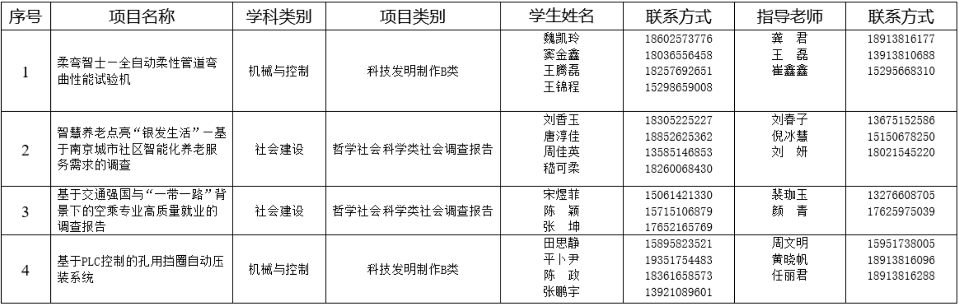 根据《关于组织开展第十九届“挑战杯”全国大学生课外学术科技作品竞赛江苏省选拔赛的通知》要求,参照《第十九届“挑战杯”全国大学生课外学术科技作品竞赛江苏省选拔赛竞赛章程》,经校外专家评审,针对项目可行性、科学性、先进性和实用性等方面综合评价,现将江苏省选拔赛推荐项目名单予以公示。