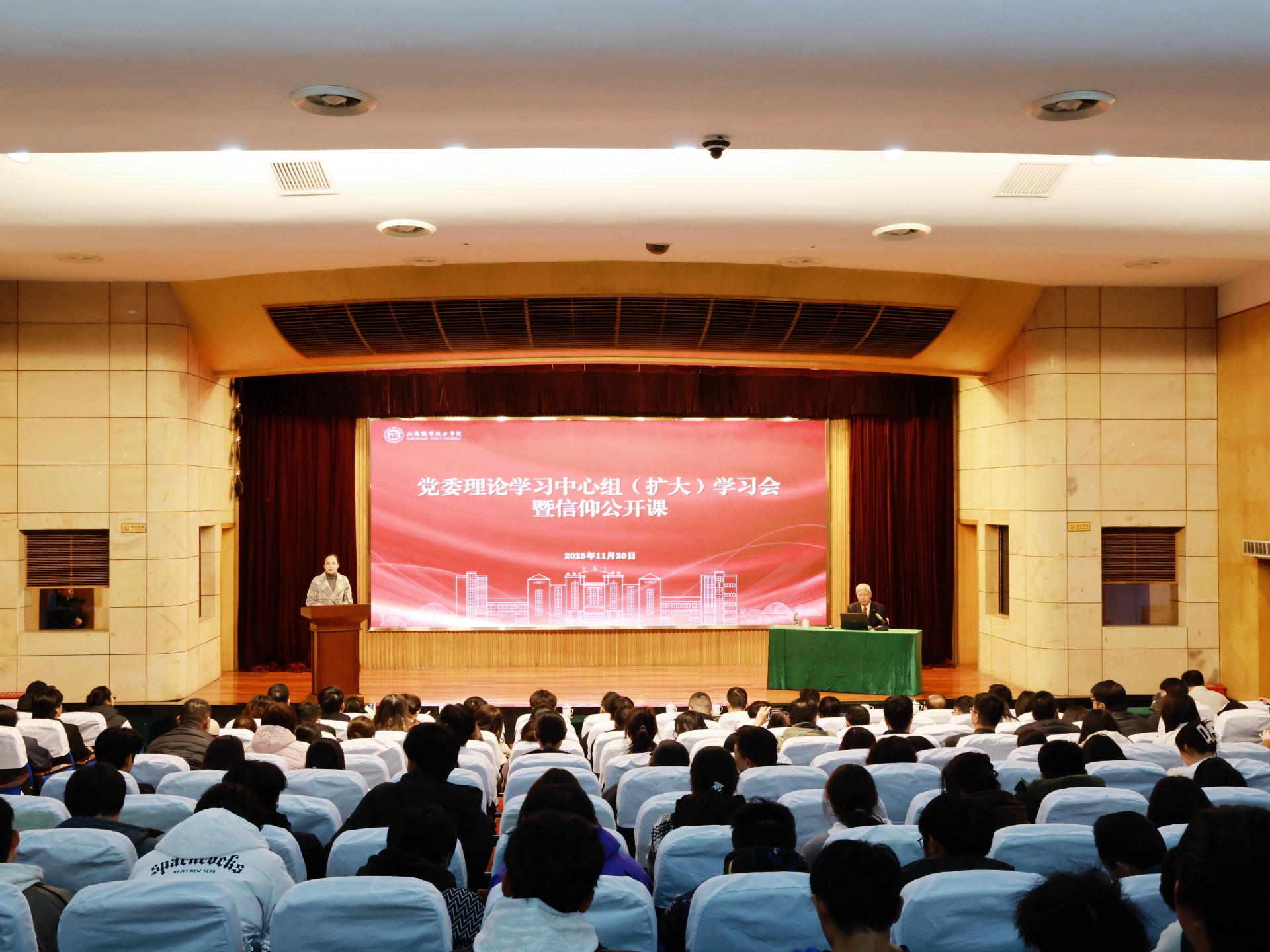 11月20日下午,十三水游戏 召开党委理论学习中心组(扩大)学习会暨信仰公开课。院党委理论学习中心组全体成员,党群工作部、思政教研部全体人员,全体学工人员和学生代表参加会议。会议由院党委副书记、副院长梁薇主持。