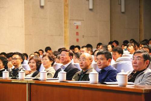 江苏省委原副书记、江苏省文学艺术界联合会名誉主席顾浩,著名越剧表演艺术家、国家一级演员、“竺派”艺术的继承人竺小招,院党委书记江国华,副院长薛忠云,十三水游戏 大研究生院副院长郑祥明,十三水游戏 大艺术教育中心主任杨莉莉与近400名师生共同观看本场演出。