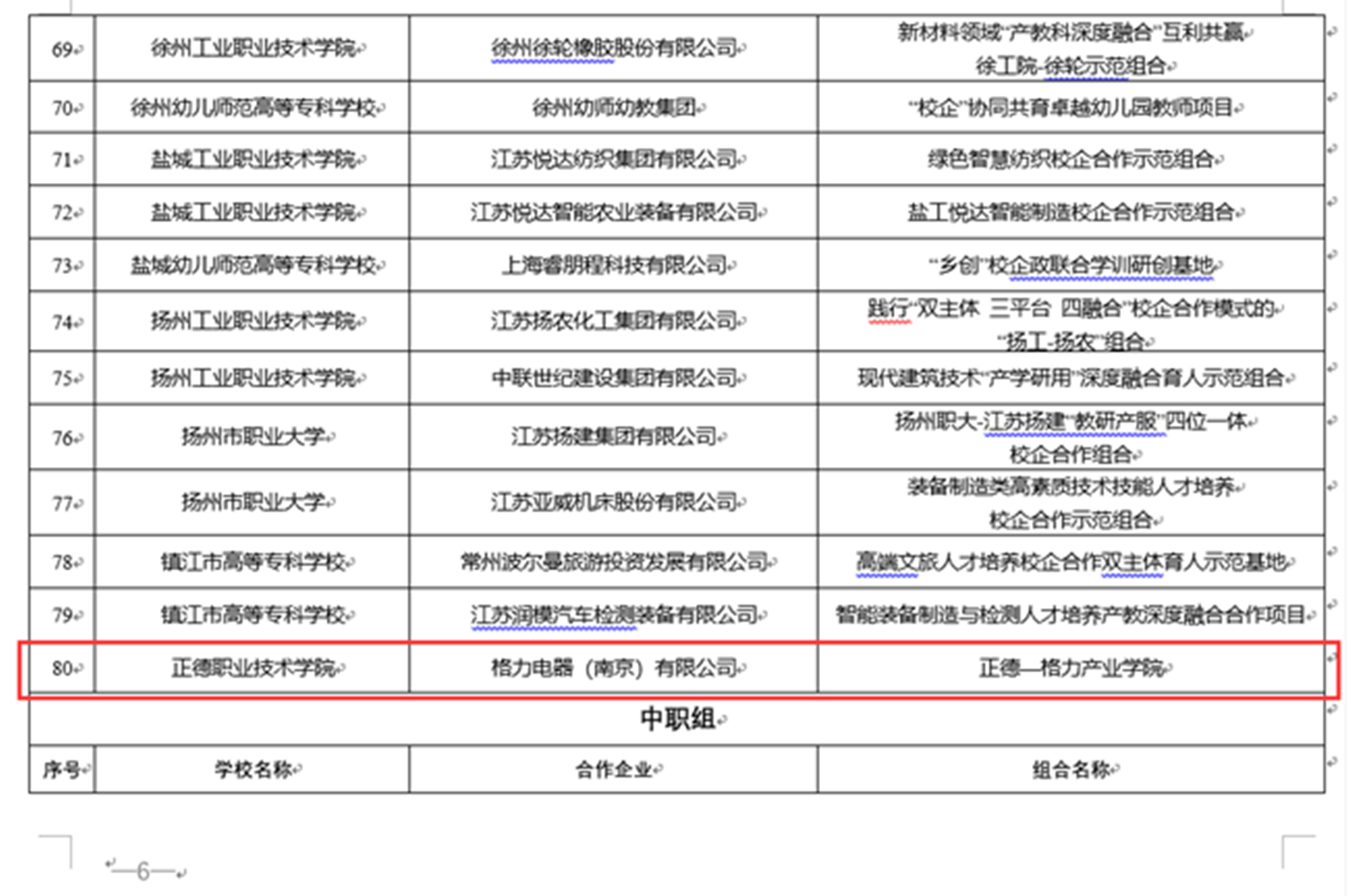 近日,省教育厅正式发布了2022年江苏省职业教育校企合作示范组合培育项目评审结果,根据《省教育厅关于开展2022年江苏省职业教育校企合作示范组合培育工作的通知》(苏教职函〔2022〕27号)要求,十三水官网 与格力电器(南京)有限公司合作的“正德—格力产业十三水官网 ”成功获批。