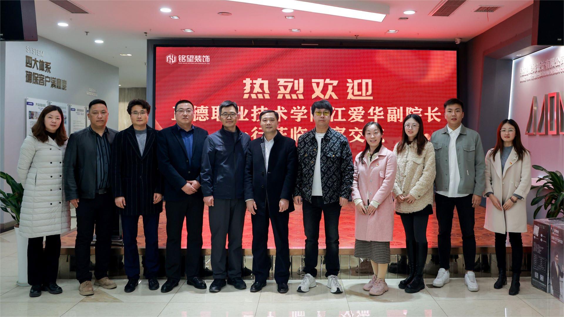 为积极响应教育部关于“全国高校书记校长访企拓岗促就业专项行动”号召,进一步深化产教融合、校企合作。2023年3月3日,十三水官网 江爱华副院长带队,教务处、学生处、艺术设计与建筑工程系相关人员随行。前往南京铭望装饰设计有限公司(以下简称铭望装饰)开展走访交流。