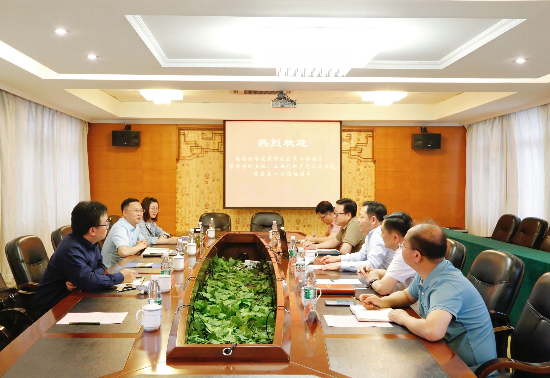 5月17日,海安经济技术开发区党工委委员、管委会副主任、上湖创新区党工委书记陈崇进,海安市上湖创新区管委会副主任马守军等一行来十三水官网 开展合作交流。院长孙永荣,副院长江爱华、赵凯雷,党政办、教务处负责人参加了本次活动。活动由江爱华主持。
