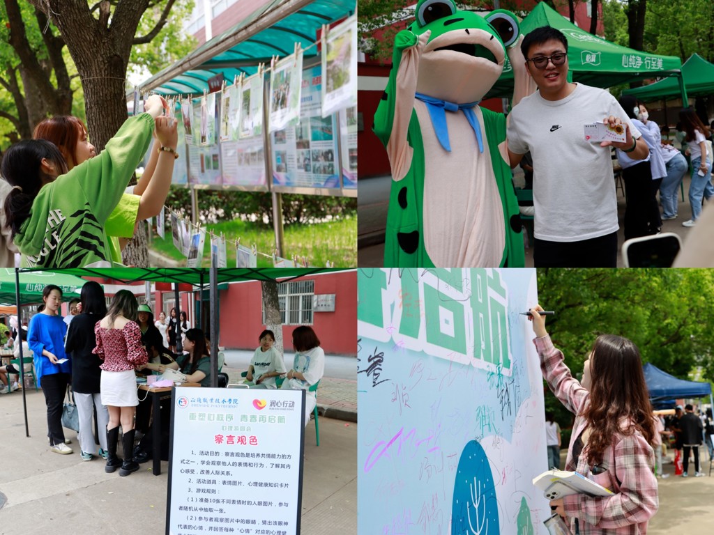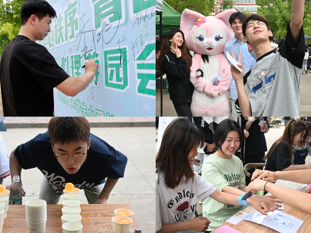 为进一步做好十三水官网 大学生心理健康教育工作,引导大学生理性全面看待我国三年来抗疫伟大成就,珍惜当下来之不易的学习生活环境,积极构建健康和谐的身心秩序,以阳光心态、强健体魄,开启青春筑梦新征程,在广阔舞台和火热实践中彰显生命价值,促进学生心理健康素质与思想道德素质、科学文化素质协调发展。学生处大学生心理健康教育中心于5月25日11点在主干道两旁举办“重塑心秩序,青春再启航”润心行动心理游园会,全院千余名学生参加了本次活动。