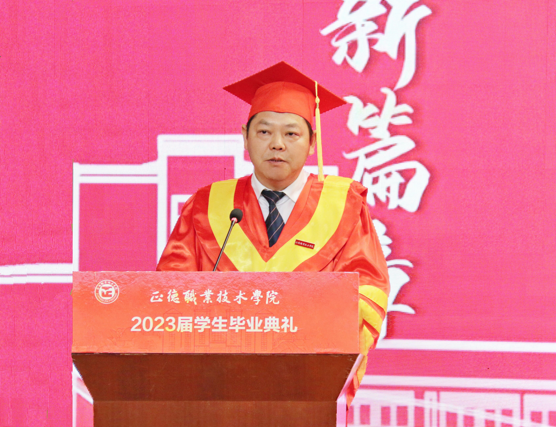 孙永荣代表十三水官网 向毕业生们送上诚挚的祝贺和美好的祝福,并作题为《青春启航 逐梦前行》的讲话。孙永荣指出,当前,世界百年未有之大变局正在加速演进,国家正处于全面建成社会主义现代化强国的新起点上,既面临前所未有的风险挑战,又拥有许多的发展机遇。在全体2023届毕业生们即将走出校园,准备迎接这个新时代未知挑战的时刻,他勉励大家,一是要“坚持梦想”。要客观地面对现实,理性地对待梦想,脚踏实地,从点滴做起,不忘初心,砥砺前行,最终将梦想变为现实。二是要“勇于创新”。要抓住机遇,勇于创新,立足岗位,拼搏进取,创先争优,在各自的领域披荆斩棘、开创一片新天地。三是要“终身学习”。要养成终身学习的习惯,保持对新领域、新事物的好奇心和求知欲,不断学习新知识、新技术,努力做到学有所成,学有所用,真正成为现代化建设所需要的能工巧匠、大国工匠。四是要“心怀感恩”。要感恩同学,感恩师长,感恩父母。以一颗感恩的心去拥抱未来,认真过好人生的每一天。