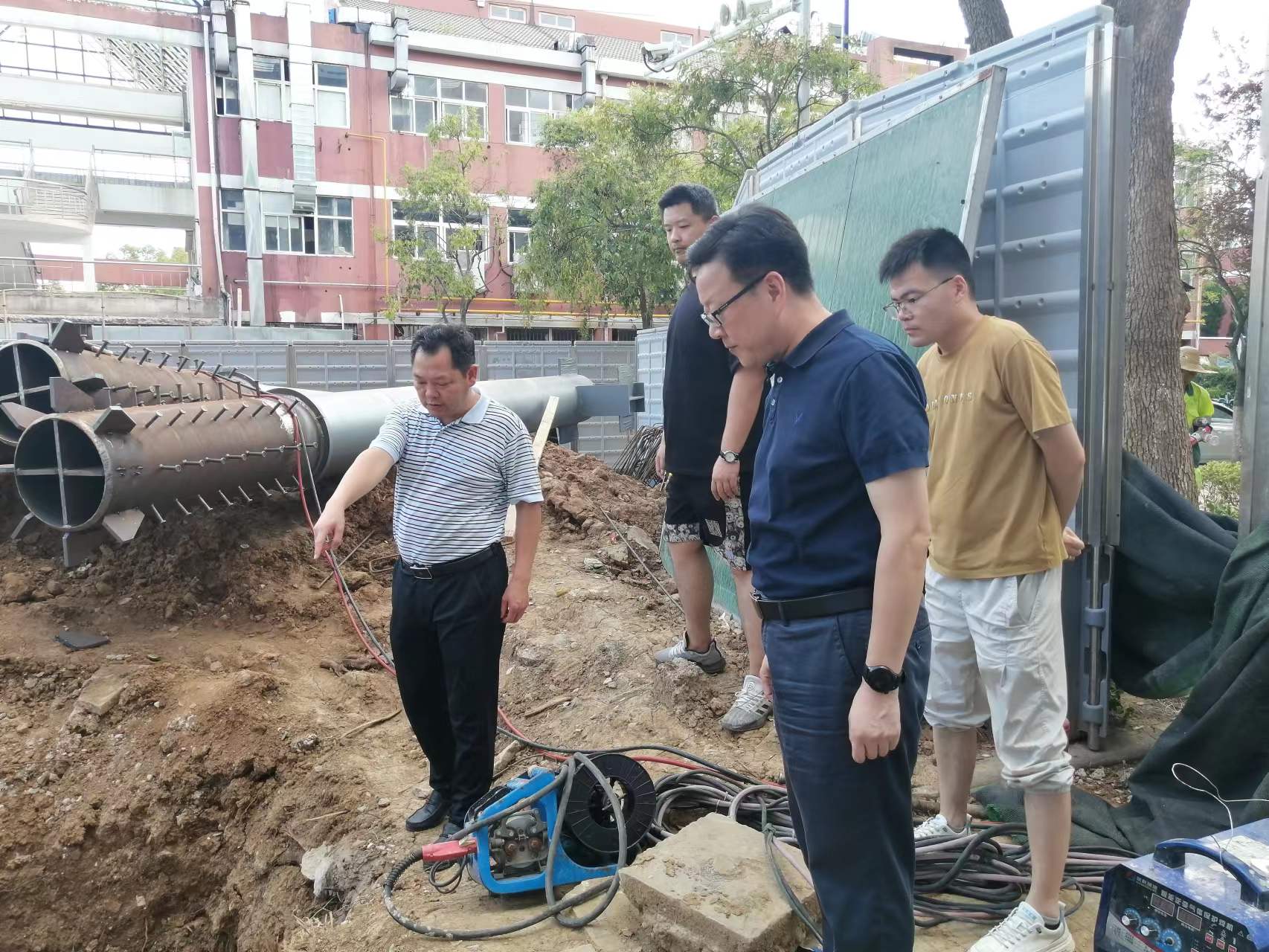 在炎炎高温下,校园内各施工现场井然有序,现场工作人员奋战一线、坚守岗位,安全有序推进项目工程建设。在各工程现场,院领导认真听取了各项目的施工进度、质量管控、安全生产管理等方面的汇报。